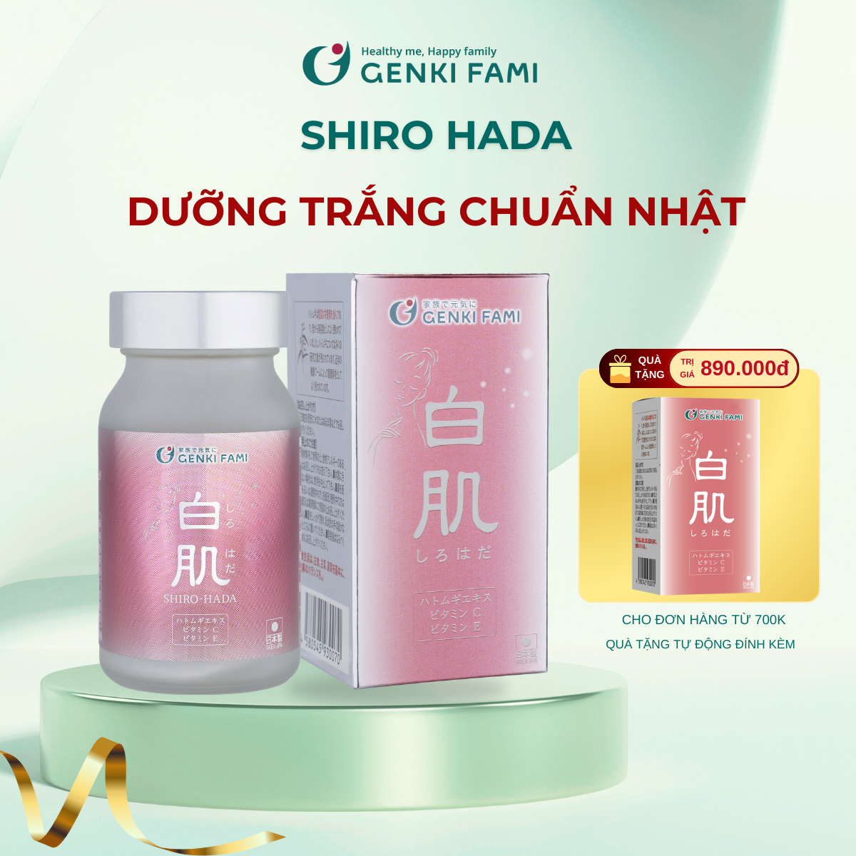 ✨Viên Uống Trắng Da Mờ Sạm Nám Từ Thiên Nhiên Shiro Hada Genki Fami Nhật Bản Hộp 90 Viên