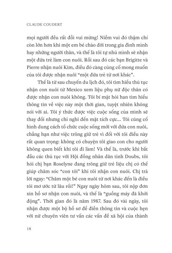 Ngày 23 tháng Mười một năm 1992, lần đầu tiên tôi đặt chân đến Việt Nam, tại thành phố Hồ Chí Minh, trước đây được biết đến với cái tên Sài Gòn. Tôi vừa mới nhận nuôi một đứa trẻ, tôi không biết gì về bé và hơn hết tôi không biết rằng tôi cũng sẽ được “nhận nuôi” ngay tại đất nước nà