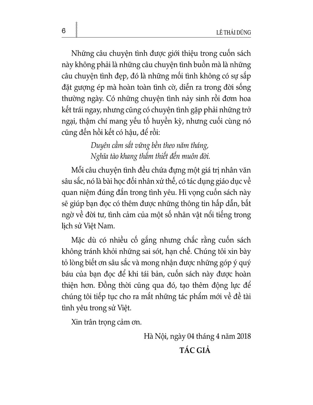 Duyên cầm sắt vững bền theo năm tháng, Nghĩa tào khang thắm thiết đến muôn đời. Mỗi câu chuyện tình đều chứa đựng một giá trị nhân văn sâu sắc, nó là bài học đối nhân xử thế, có tác dụng giáo dục về quan niệm đúng đắn trong tình yêu. Hy vọng cuốn sách này sẽ giúp bạn đọc có thêm được những thông tin hấp dẫn, bất ngờ về đời tư, tình cảm của một số nhân vật nổi tiếng trong lịch sử Việt Nam.