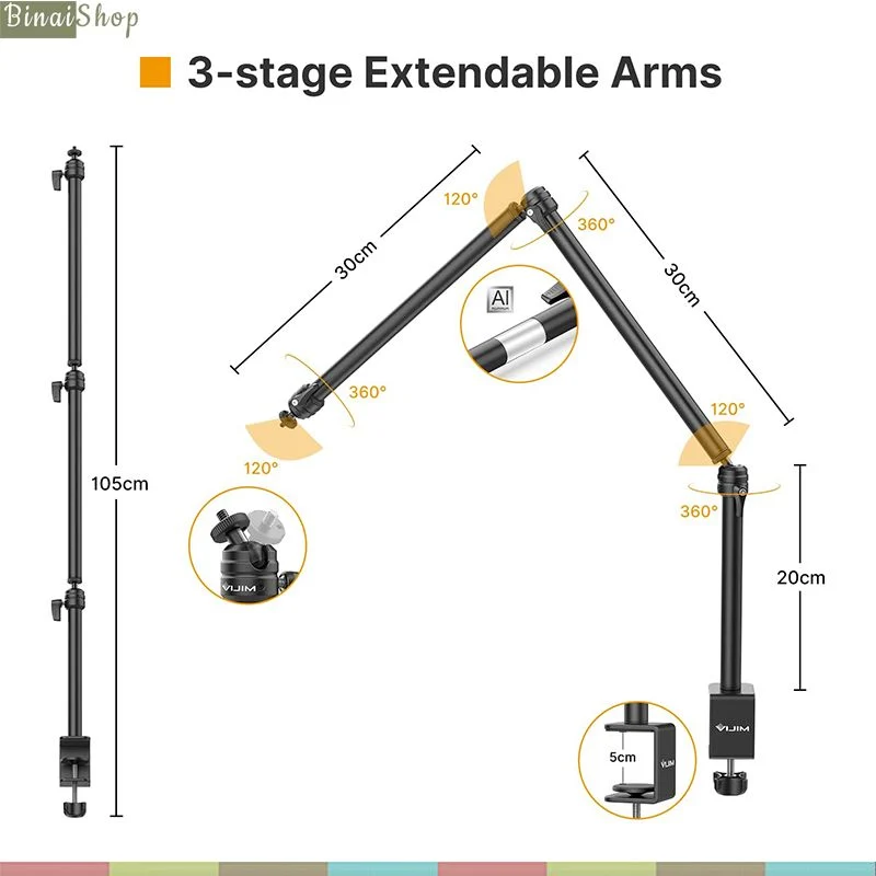 Arm Vijim LS11 đa năng gắn được micro, máy ảnh DSLR kèm phụ kiện nhanh chóng
