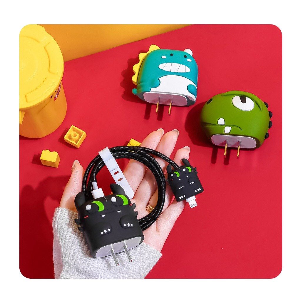 Bộ phụ kiện bảo vệ cáp và củ sạc bằng silicon hình hoạt họa dễ thương cho bộ sạc iPhone 18W và 20W