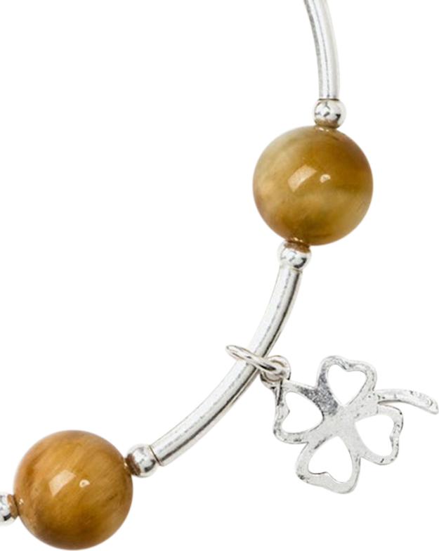 ✨Vòng Đá Mắt Hổ Phối Charm Bạc 925 Cỏ 4 Lá 10mm Ngọc Quý Gemstones VT168