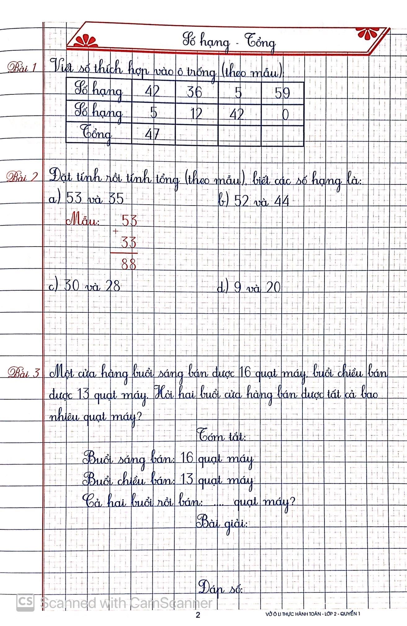 ✨Vở Ô Li Thực Hành Toán 2 - Quyển 1