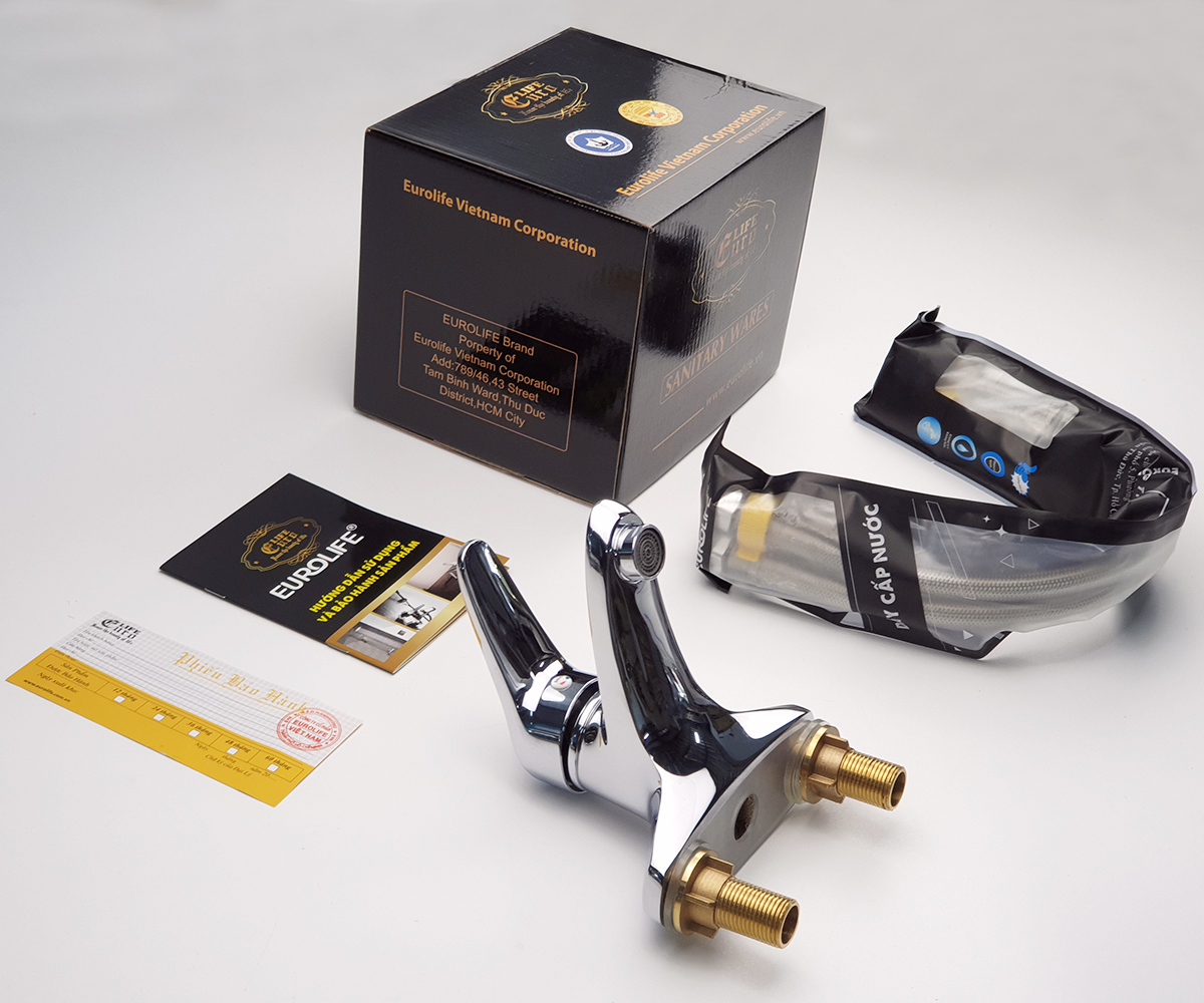 Vòi Lavabo nóng lạnh Inox SUS 304 Chrome Eurolife EL-1502 * Hãng sản xuất : Eurolife Việt Nam * Chất liệu : Sản phẩm được đúc trọng lực bằng Inox SUS 304 tinh khiết không
