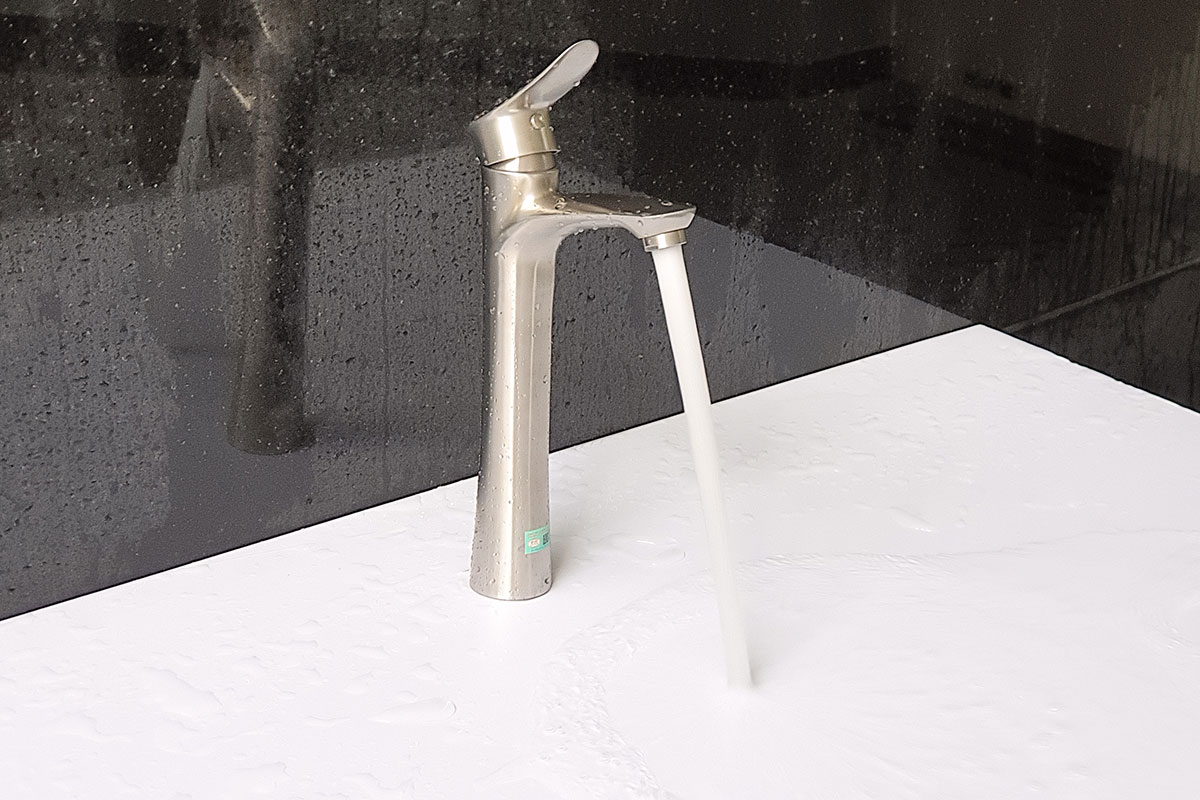 Thân vòi cao với thiết bo tròn, kết hợp mũi vuông, tạo cảm giác khỏe khoắn và sang trọng cho phòng tắm