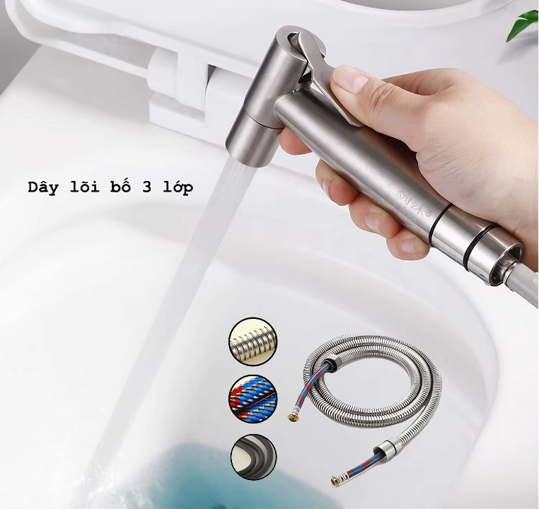 - Đầu xịt rửa vệ sinh, toilet - Chất liệu: Nhựa ABS mạ Crom 2 lớp - Lõi bằng đồng nguyên chất đảm bảo chống ăn mòn trong mọi môi trường nước