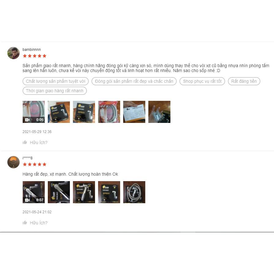 - Đầu vòi xịt vệ sinh inox 304 được thiết kế chắc khỏe, đặc biệt vừa vặn với tay cầm. - Chống chịu được va đập mạnh, không bị móp méo. Cần bấm chống trơn