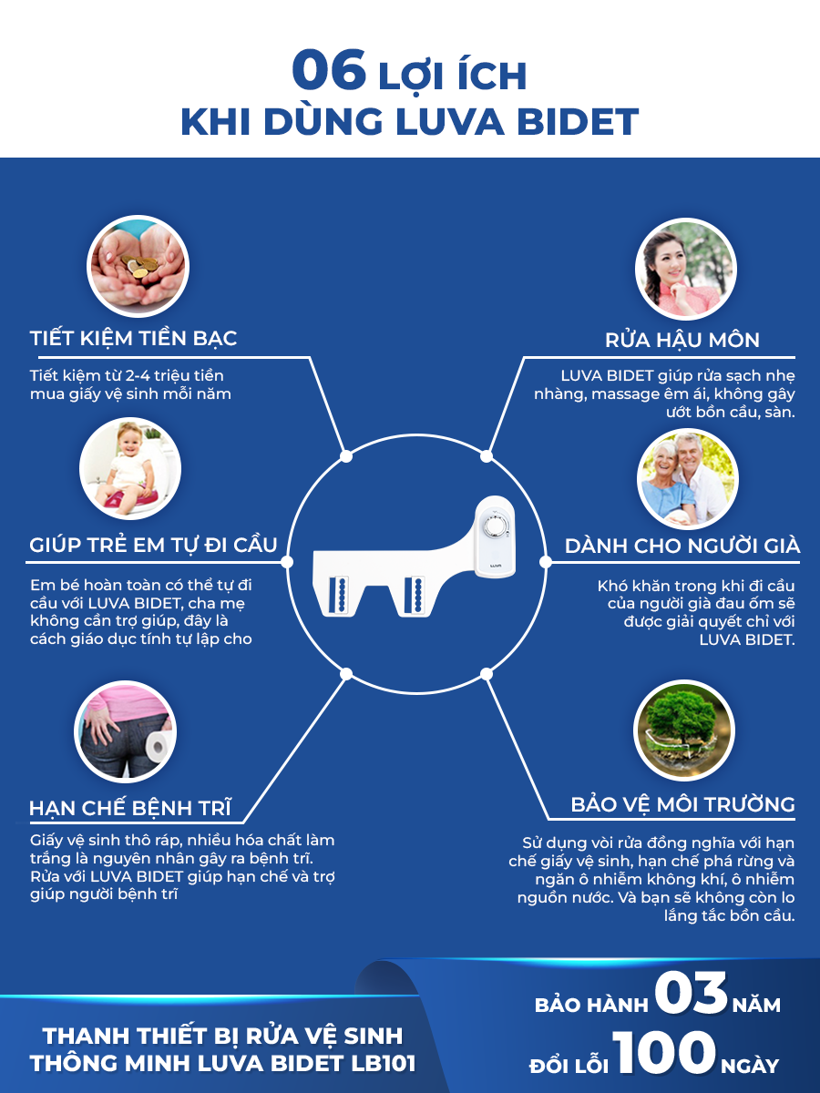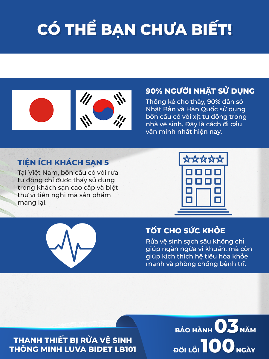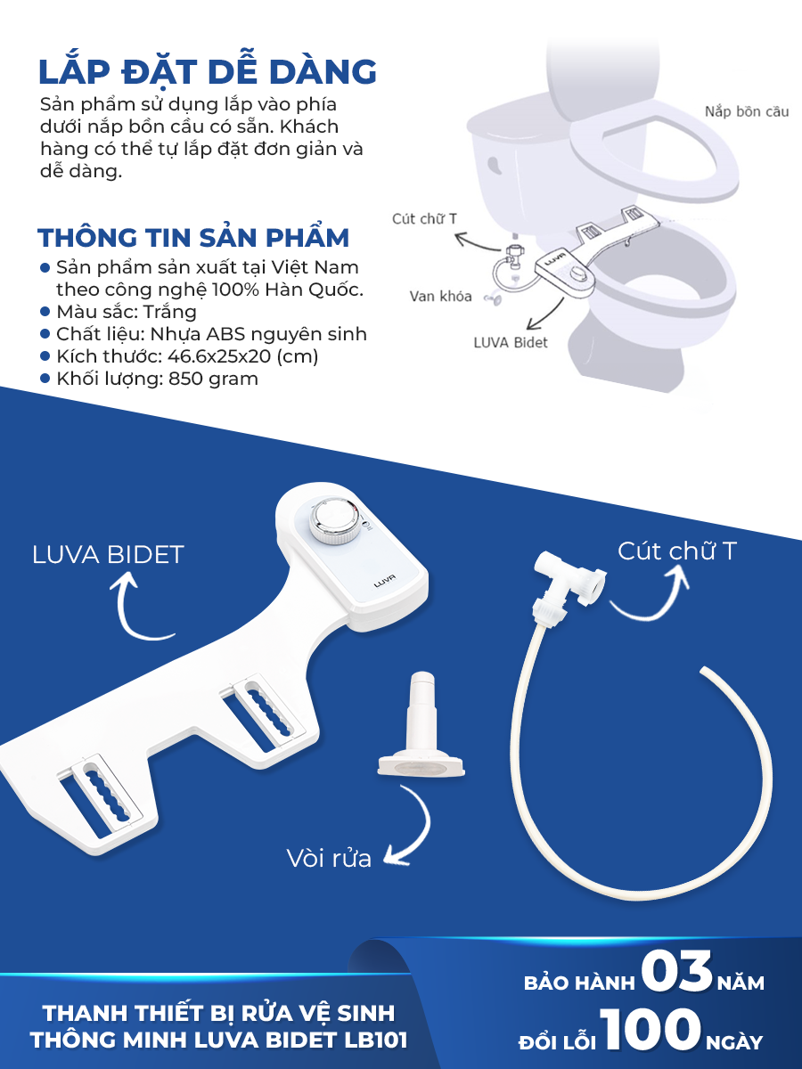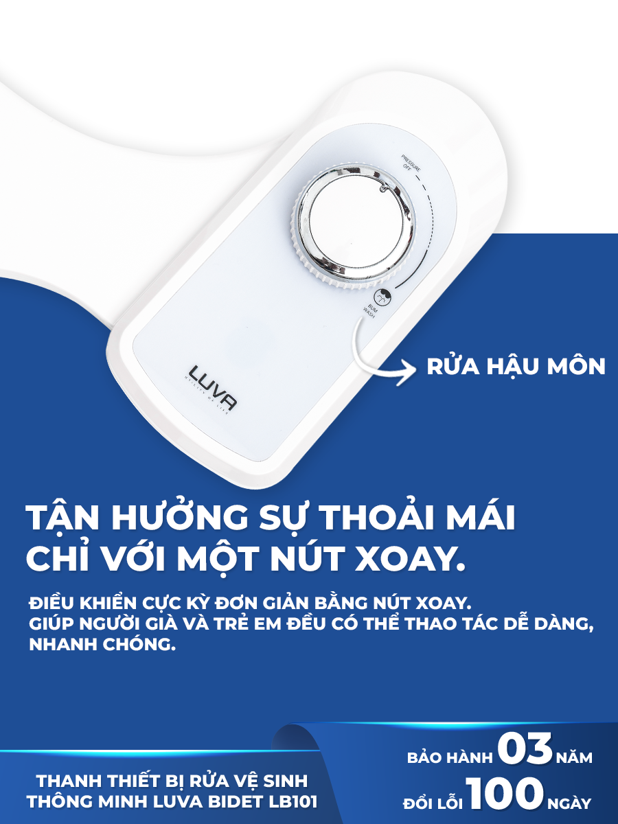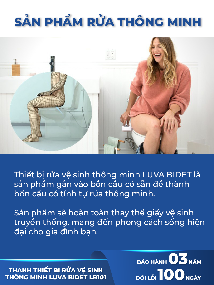Mua tại TiktokVòi xịt vệ sinh thông minh LUVA BIDET LB101/LB201 xuất Hàn Quốc, BH 3 nămXuất xứ : Việt Nam ( Công nghệ 100% Hàn Quốc ) Thương hiệu : LUVA ️ Mã sản phẩm: LB101 - 1 vòi (rửa hậu môn) ️ Mã sản phẩm: LB201 - 2 vòi (2 chế độ rửa): rửa hậu môn, rửa phụ nữ => phù hợp gia đình