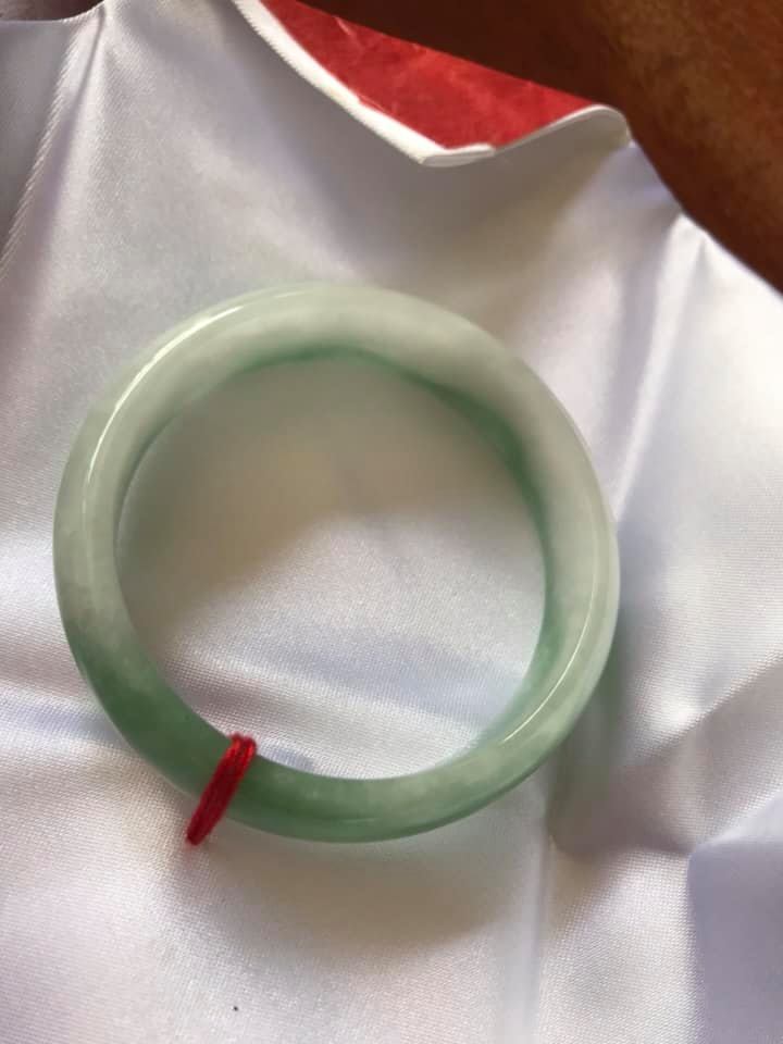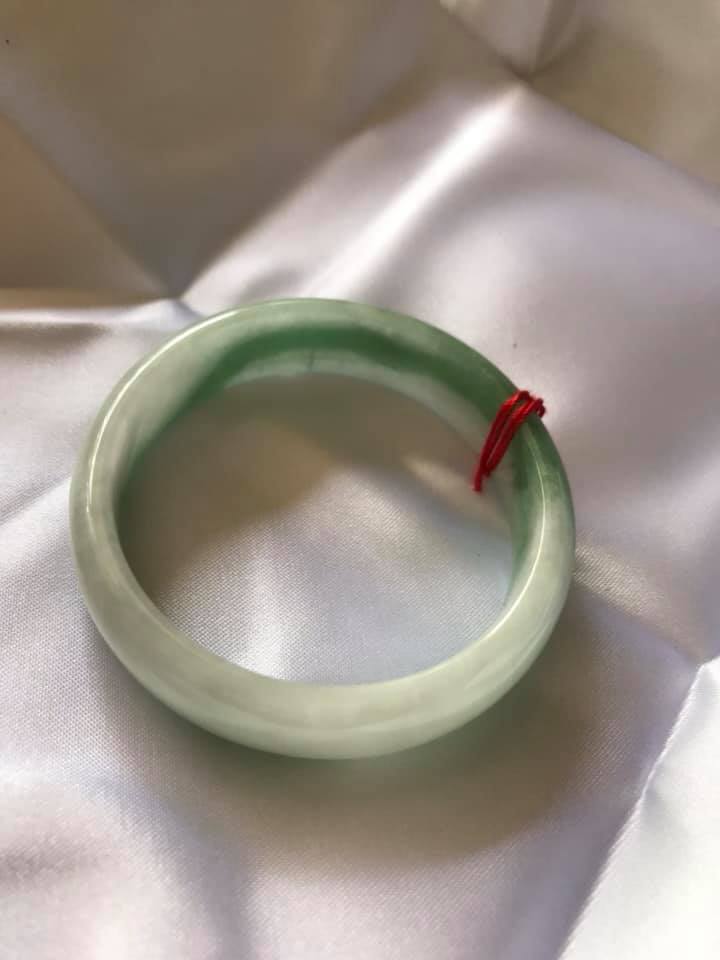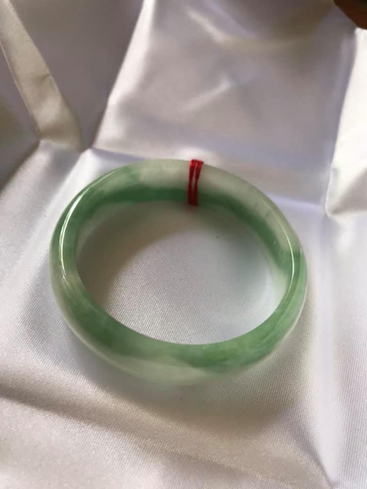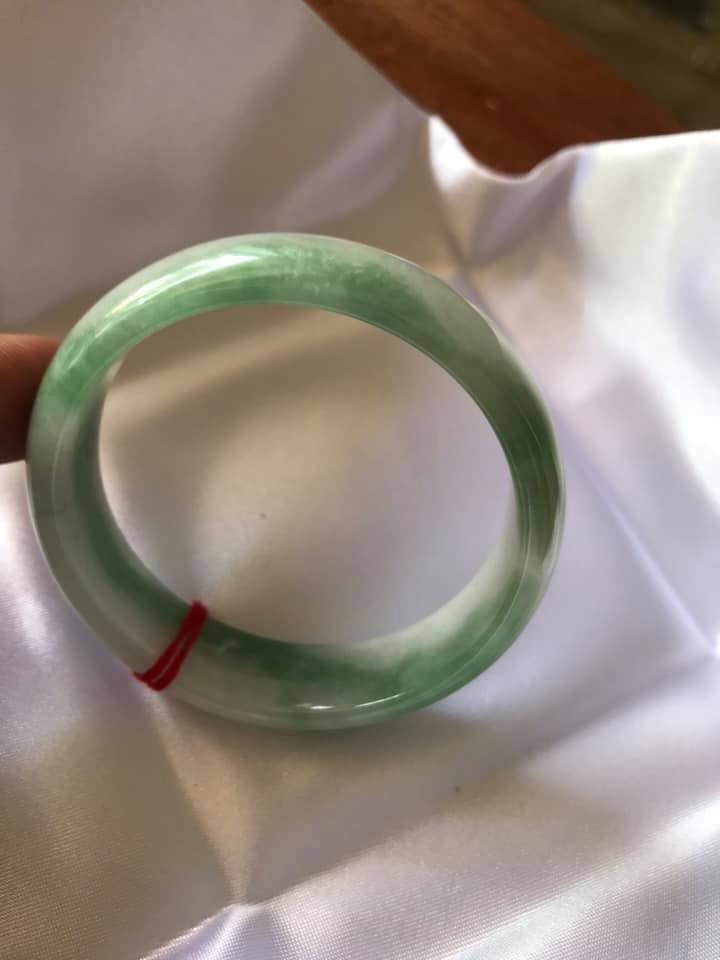 VÒNG BẢN HẸ A SIZE 49 ĐÁ CẨM THẠCH TỰ NHIÊN MÀU XANH LÁ ĐẬM Ở GIỮA LAM TRẮNG ĐỀU VÒNG NỮ 42KG ĐẾN 52KG ĐEO Ạ Sản phẩm này là tài sản cá