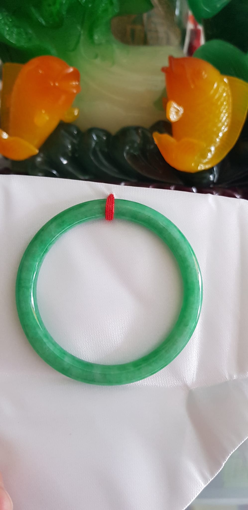 CHIẾC VÒNG TAY PHONG THỦY ĐÁ CẨM THẠCH LÝ ĐẸP K 54MM x DẦY 8MM MÀU XANH LÁ ĐỀU BÓNG ĐẸP NỮ MỆNH HỎA MỘC NỮ CÂN NẶNG 53kg đến 64kg Đeo Đẹp Tay ạ