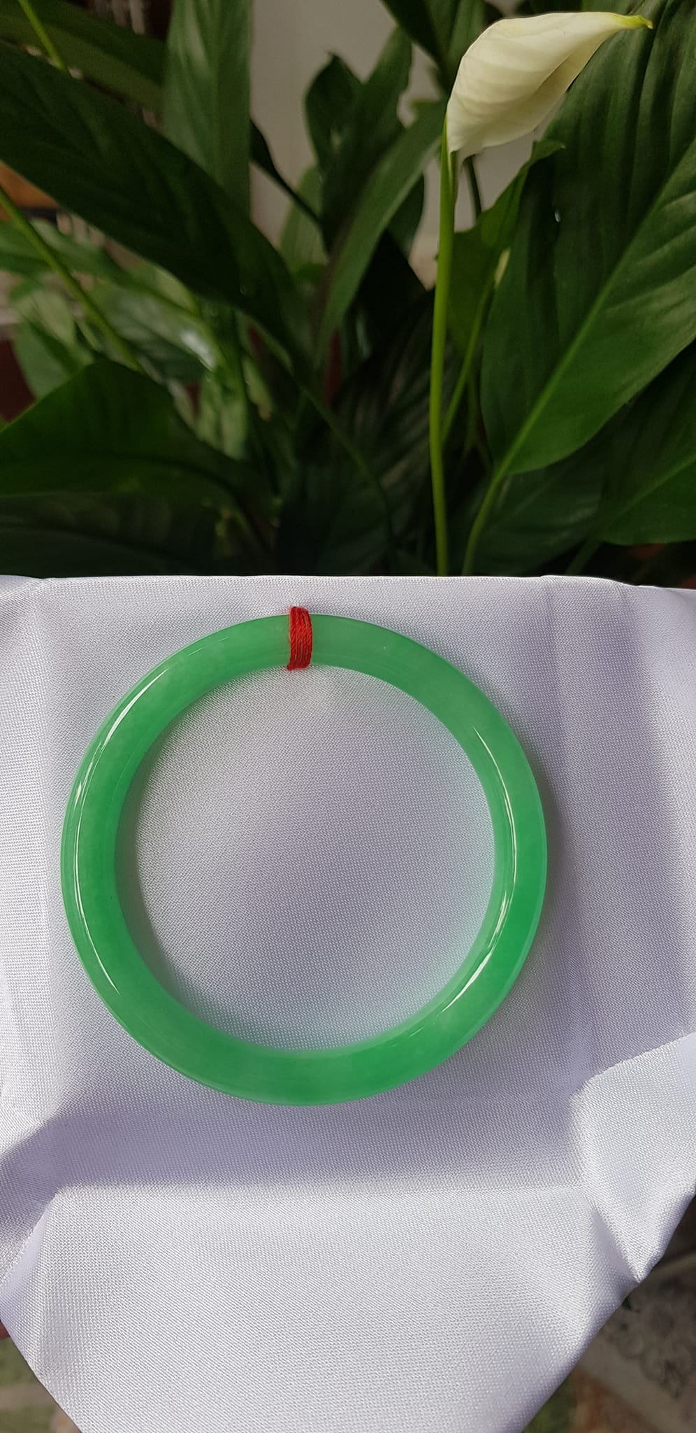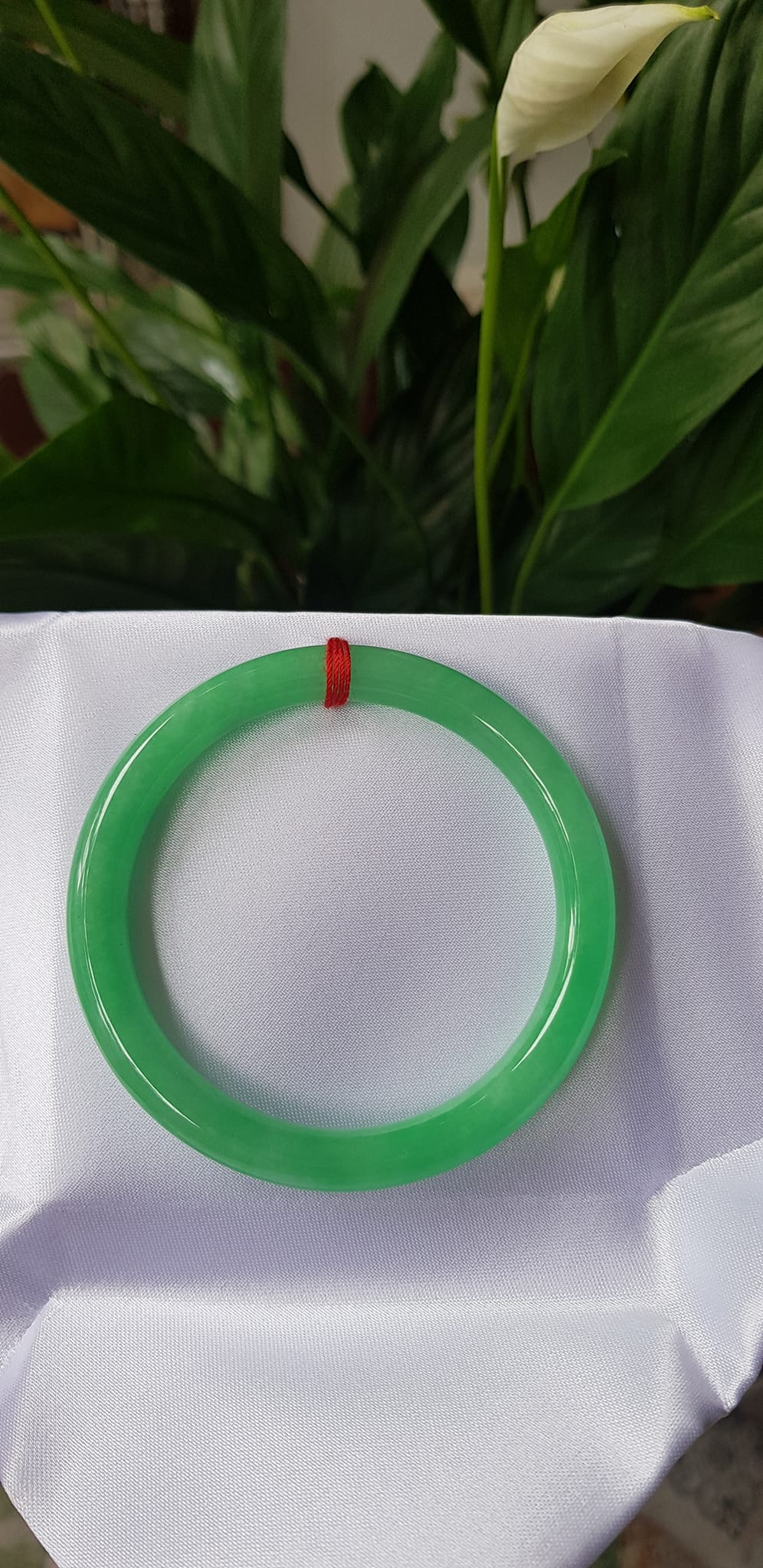 Vòng cẩm thạch Đậu Lý AI CN 53mm Ni 53mm x cọng 7mm Màu xanh Ngọc Đậm đều bóng đẹp xinh xắn Hợp Nữ mệnh Mộc mệnh Hỏa mệnh Thủy 52kg-56kg đeo đẹp ạ Sản