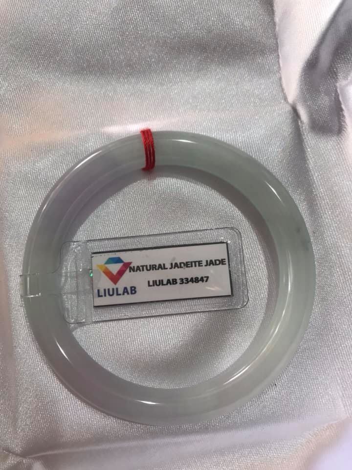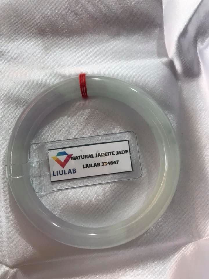 ✨VÒNG CẨM THẠCH TỰ NHIÊN TRẮNG TÍM SỊN 50mm x Dầy 8mm KÈM GIẤY KIỂM ĐỊNH LIULAB 334847 MÀU TRẮNG LAM TÍM NHẸ 1 BÊN ĐIỂM XANH NHẸ ĐẸP LẮM NỮ 50Kg - 55kg ĐEO ĐẸP Ạ