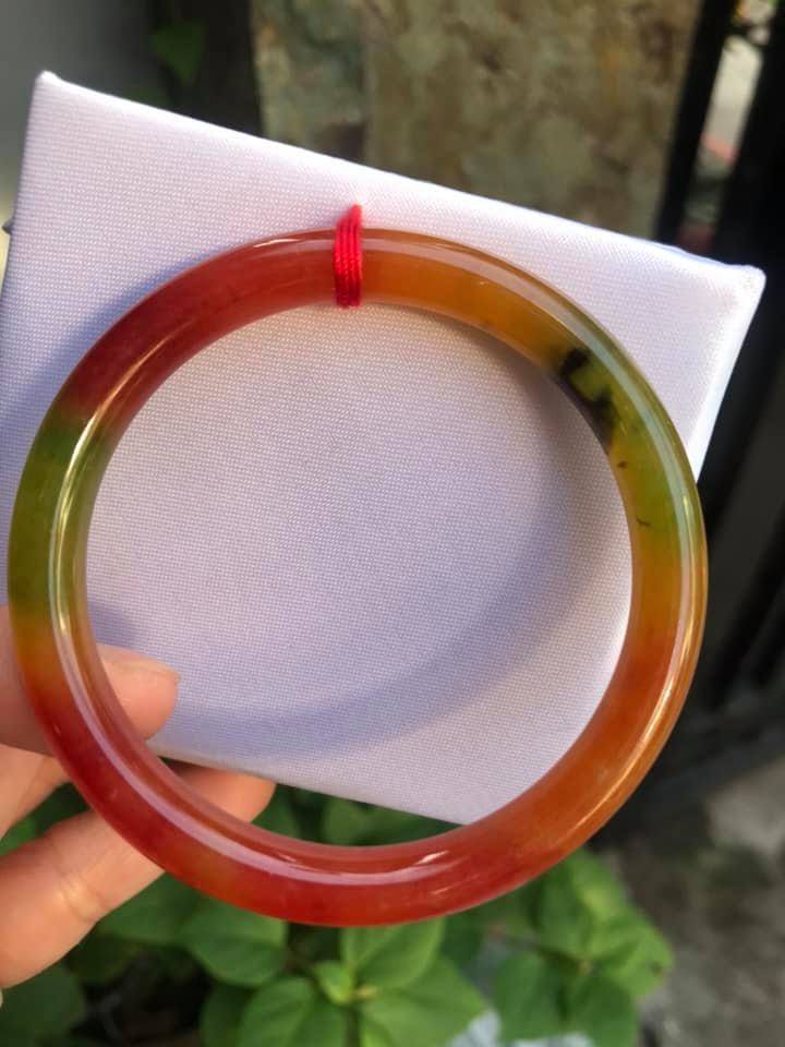 VÒNG CẨM THẠCH TỨ QUÝ ĐỎ XANH LÁ size 53mm x dầy 6,8mm / VÒNG TAY ĐÁ PHONG THUỶ SUNNY QUẬN 8