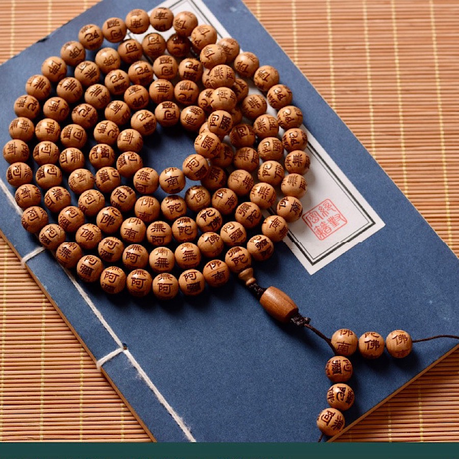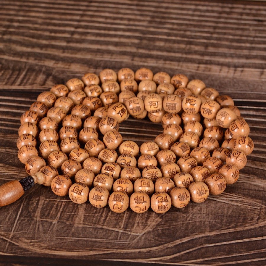 ✨VÒNG CHUỖI GỖ LỤC ĐẠO MỘC LIÊN HOA KHẮC A DI ĐÀ PHẬT 108 hạt 10ly TẶNG HỘP ĐỰNG