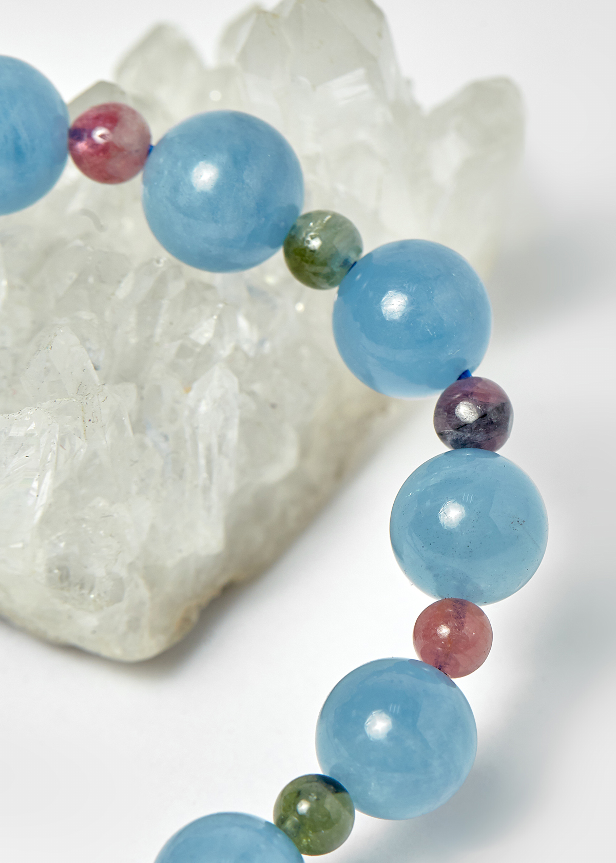 Vòng tay mân côi đá aquamarine - Hợp Mệnh Thủy & Mộc [ Ngọc Quý ]