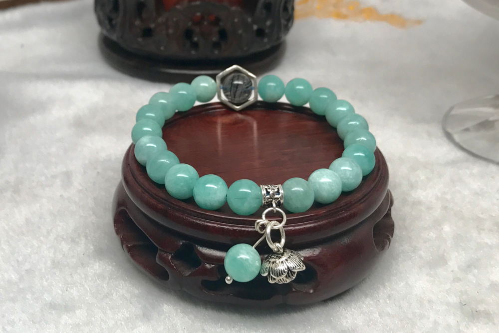 ✨Vòng Đá Amazonite Mix Charm Hoa Sen Bạc Ngọc Quý Gemstones VPT043