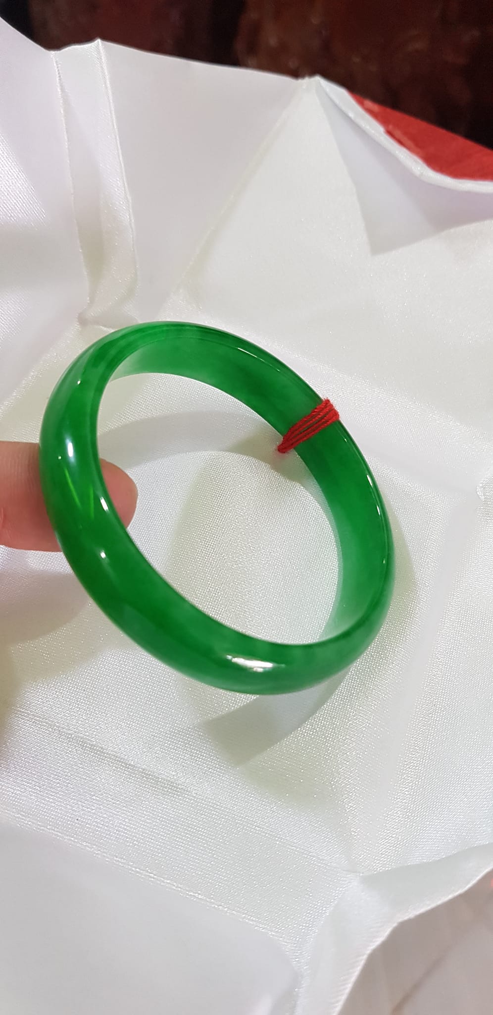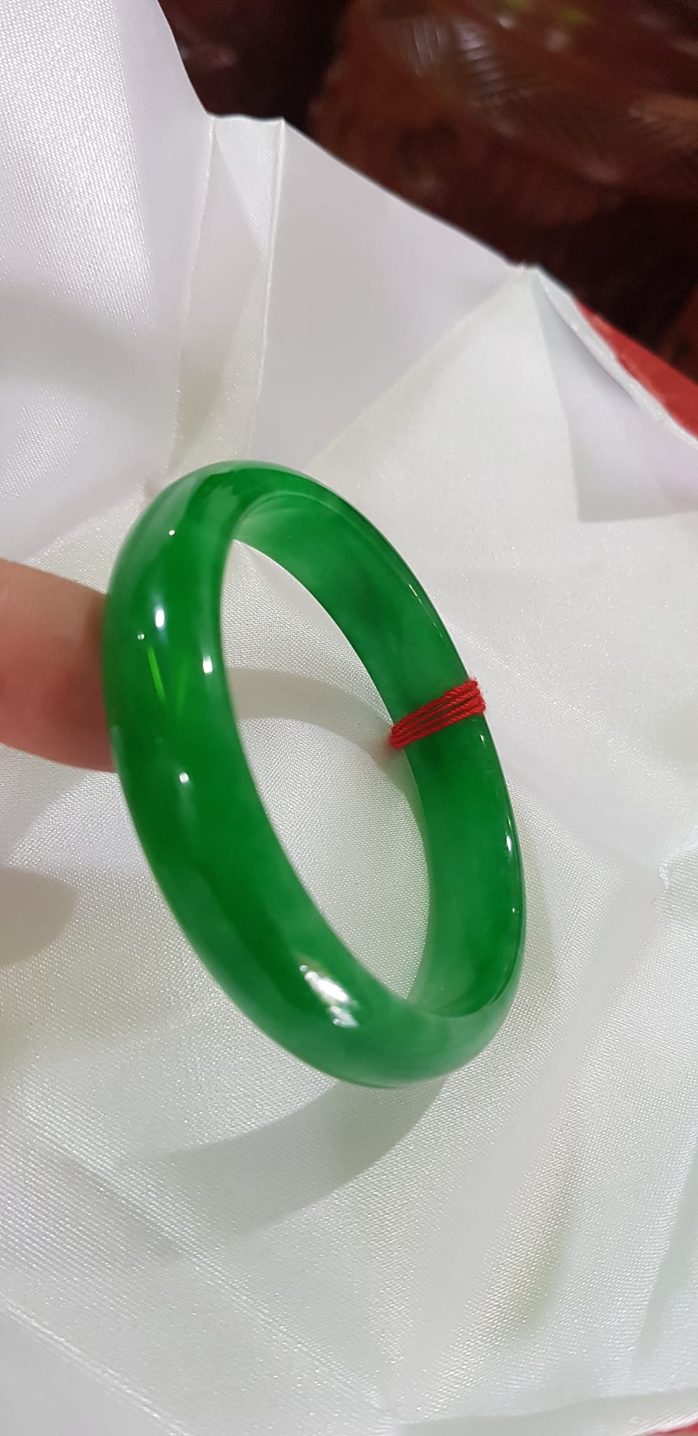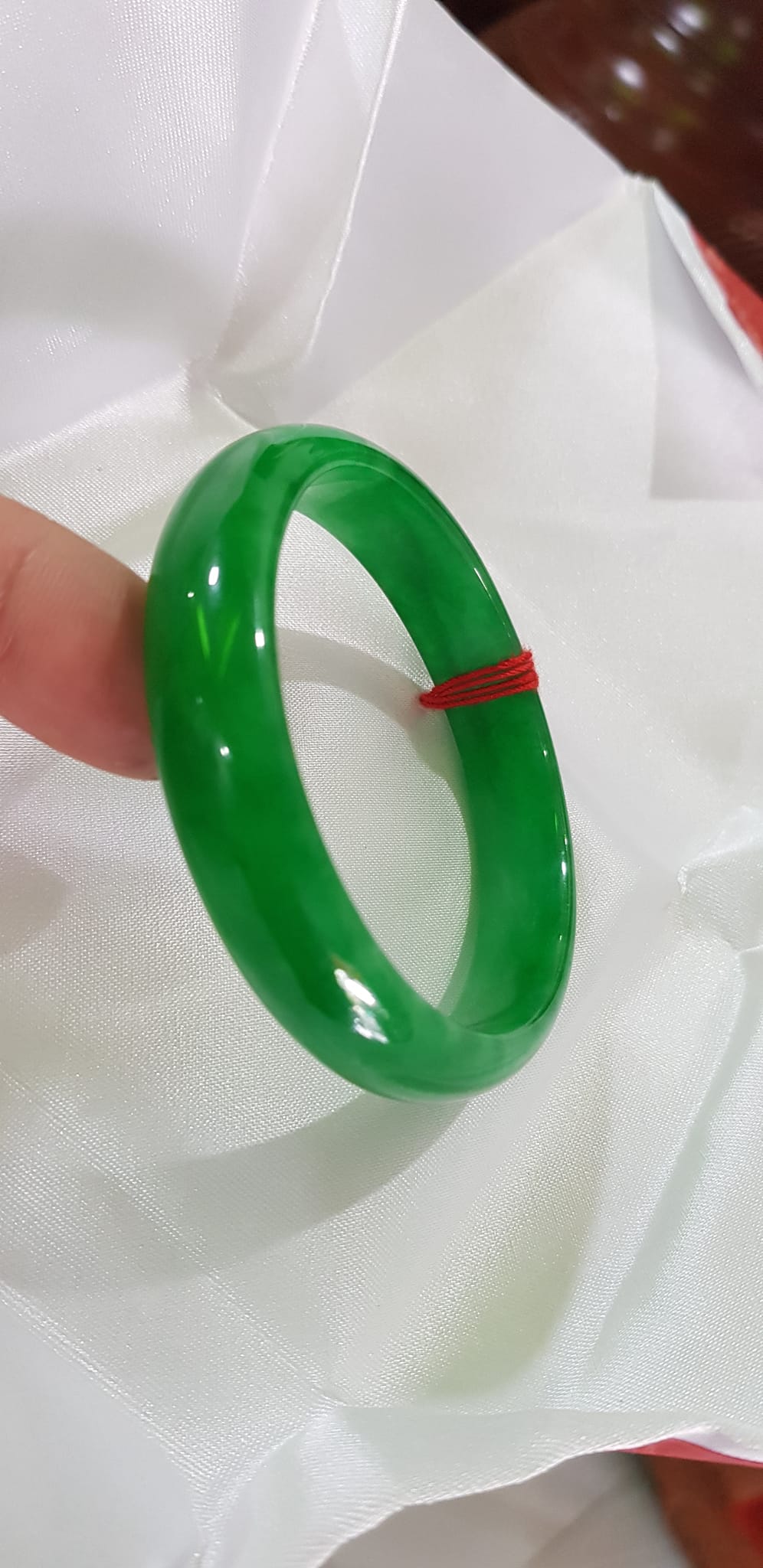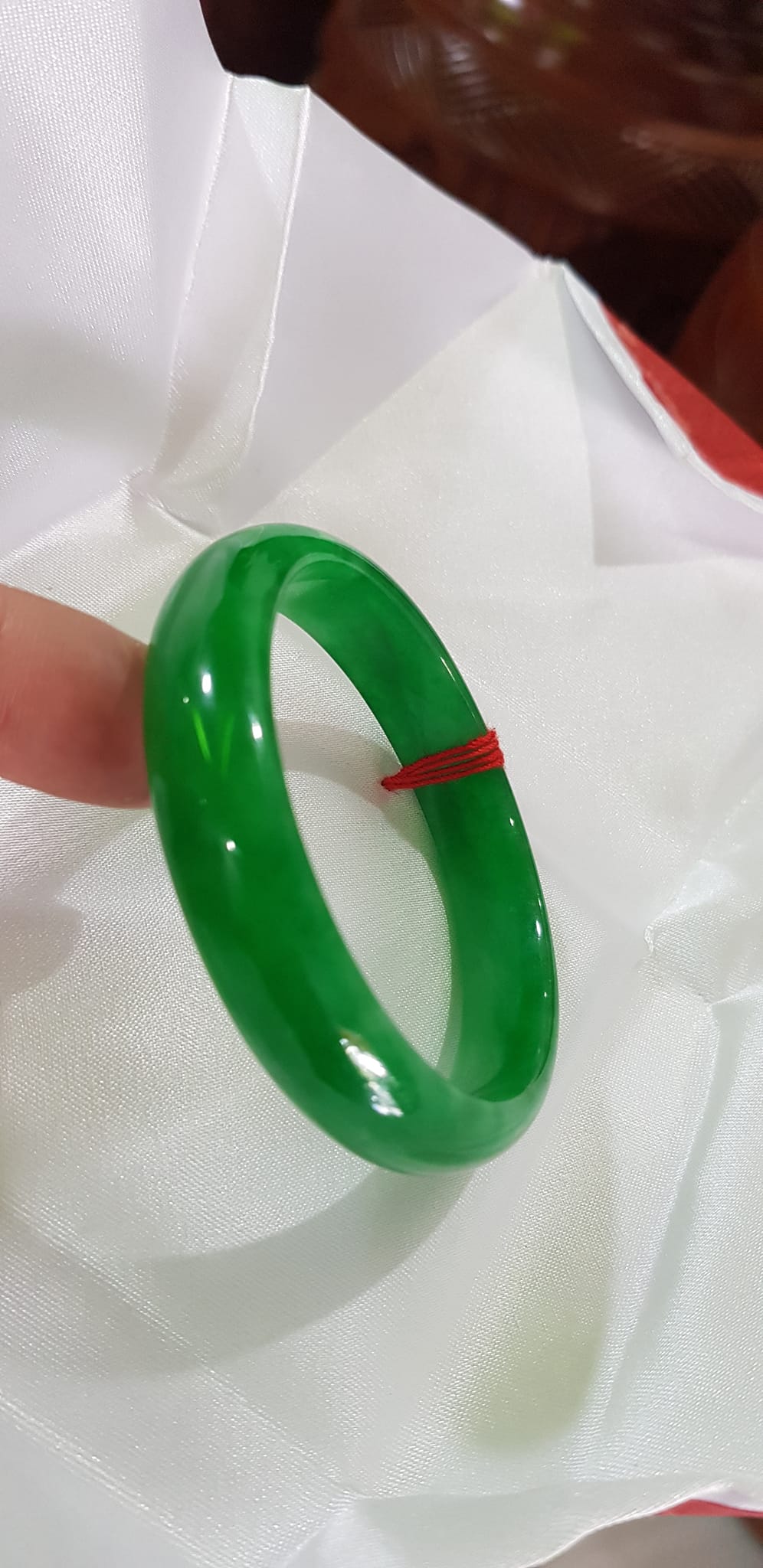 Vòng cẩm thạch Đ Lý 52mm x dầy 7,8mm màu xanh lá tươi hợp Nữ mệnh Mộc mệnh Hỏa 52kg - 56kg đeo ạ