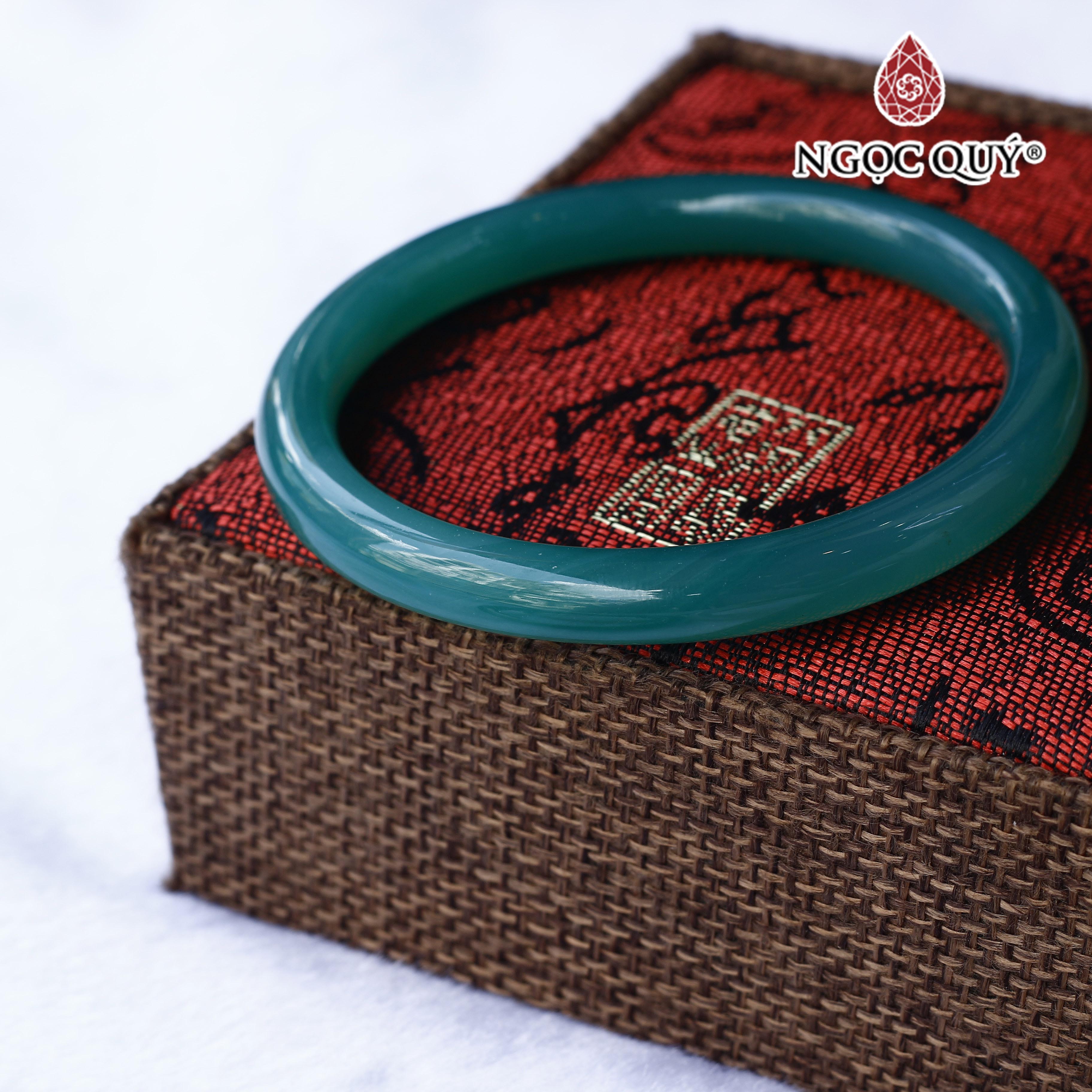 Vòng nguyên khối bản cọng tròn đá mã não xanh - Hợp Mệnh Mộc & Hỏa [ Ngọc Quý ]