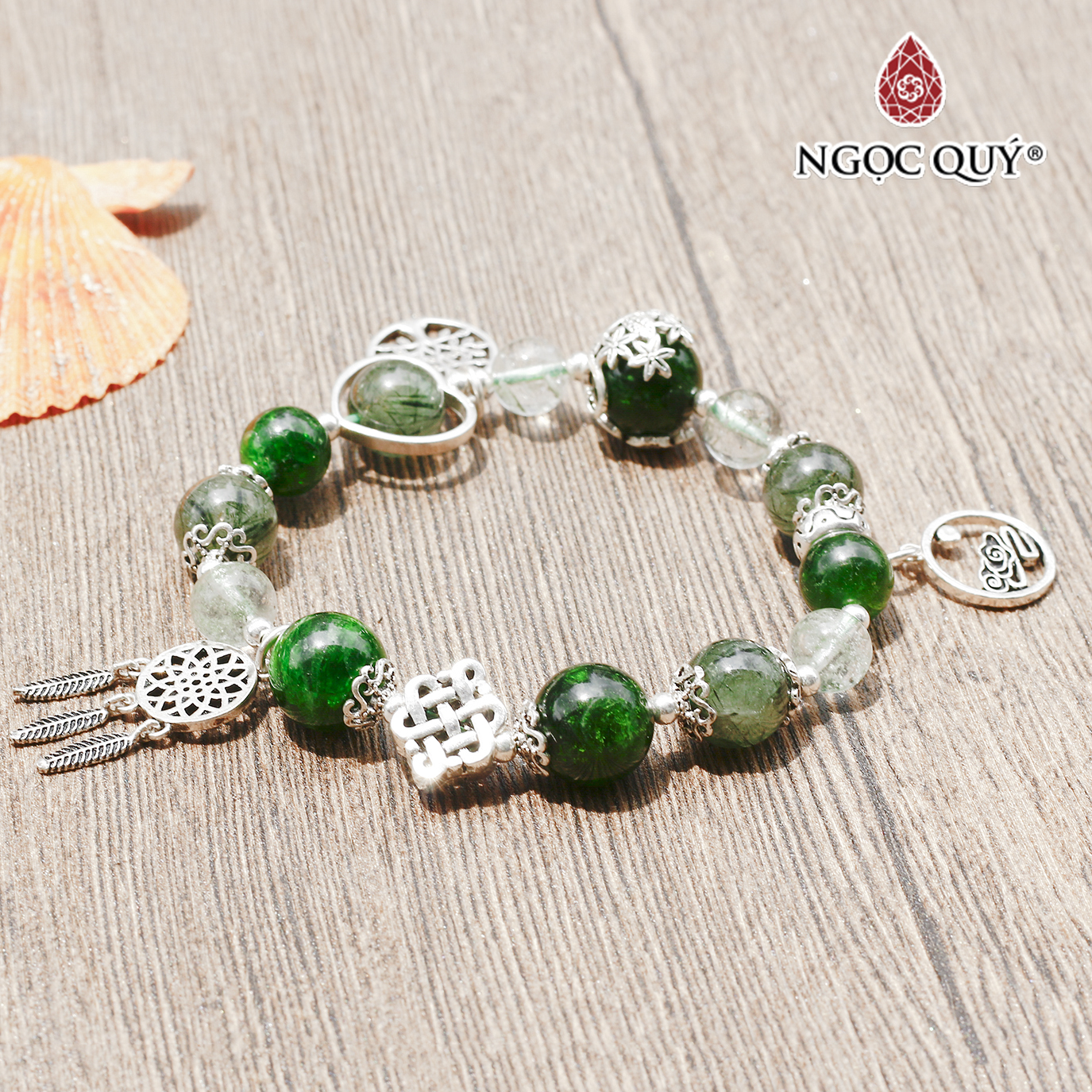 Vòng tay đá thạch anh tóc xanh phối charm bạc - Hợp mệnh mộc, hỏa | Ngọc Quý Gemstones |