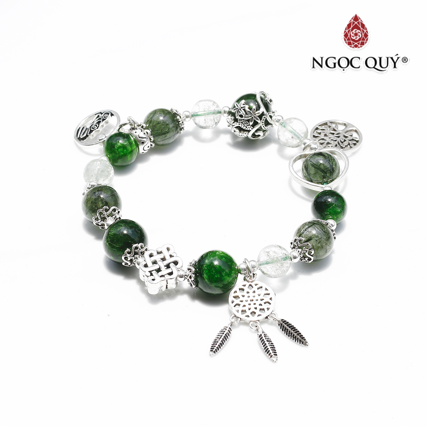 ✨Vòng đá thạch anh tóc xanh phối diopside charm bạc mệnh hỏa, mộc - Ngọc Quý Gemstones