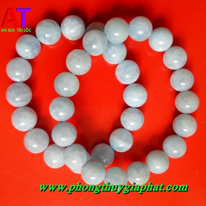 Vòng đeo tay đá aquamarine 12li khi đeo giúp người đeo tĩnh tâm, bình tâm, kiềm cơn giận.