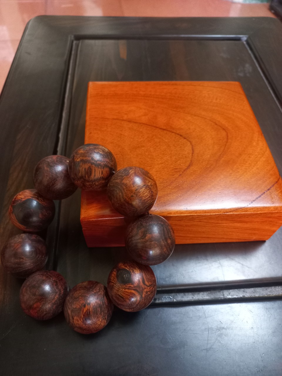 _ Kích thước hạt vòng to 25ly + hộp đựng vòng gỗ hương đá kt vuông hộp 14×14cm dầy 5cm