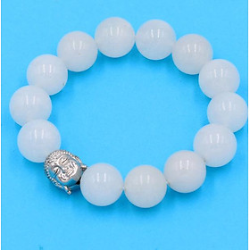 ✨Vòng đeo tay thạch anh trắng 14 ly - cẩn hạt Như Lai inox trắng VTTNLT14 - hợp mệnh Kim, mệnh Thủy