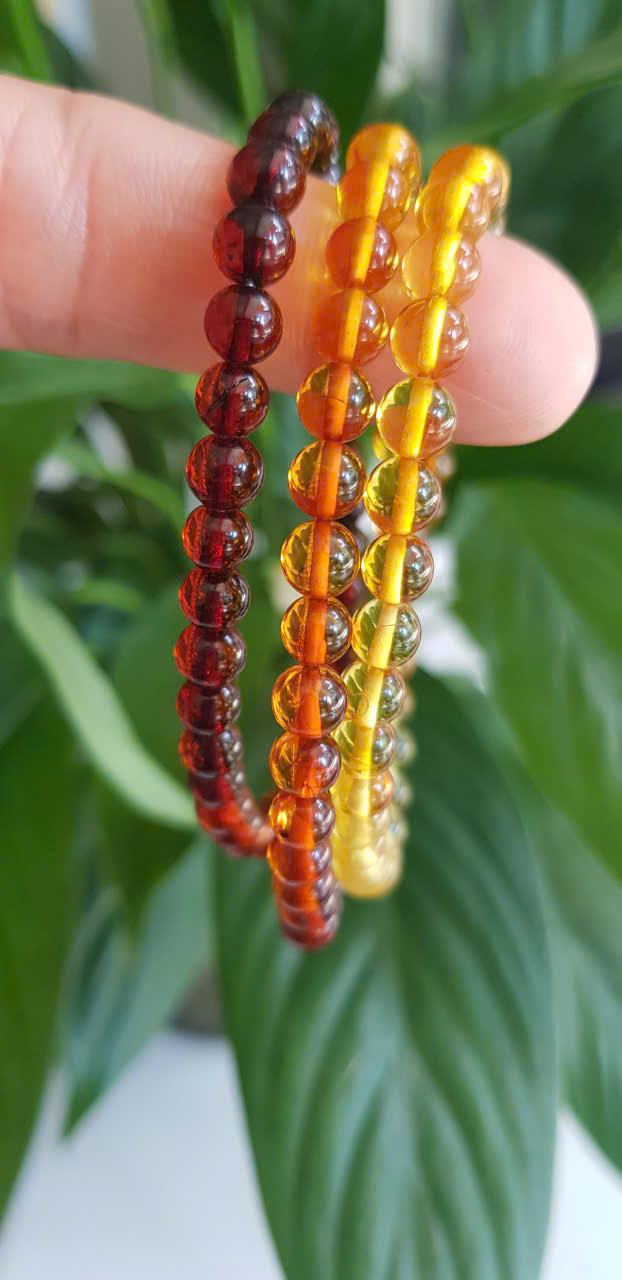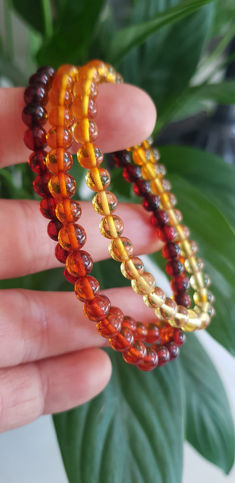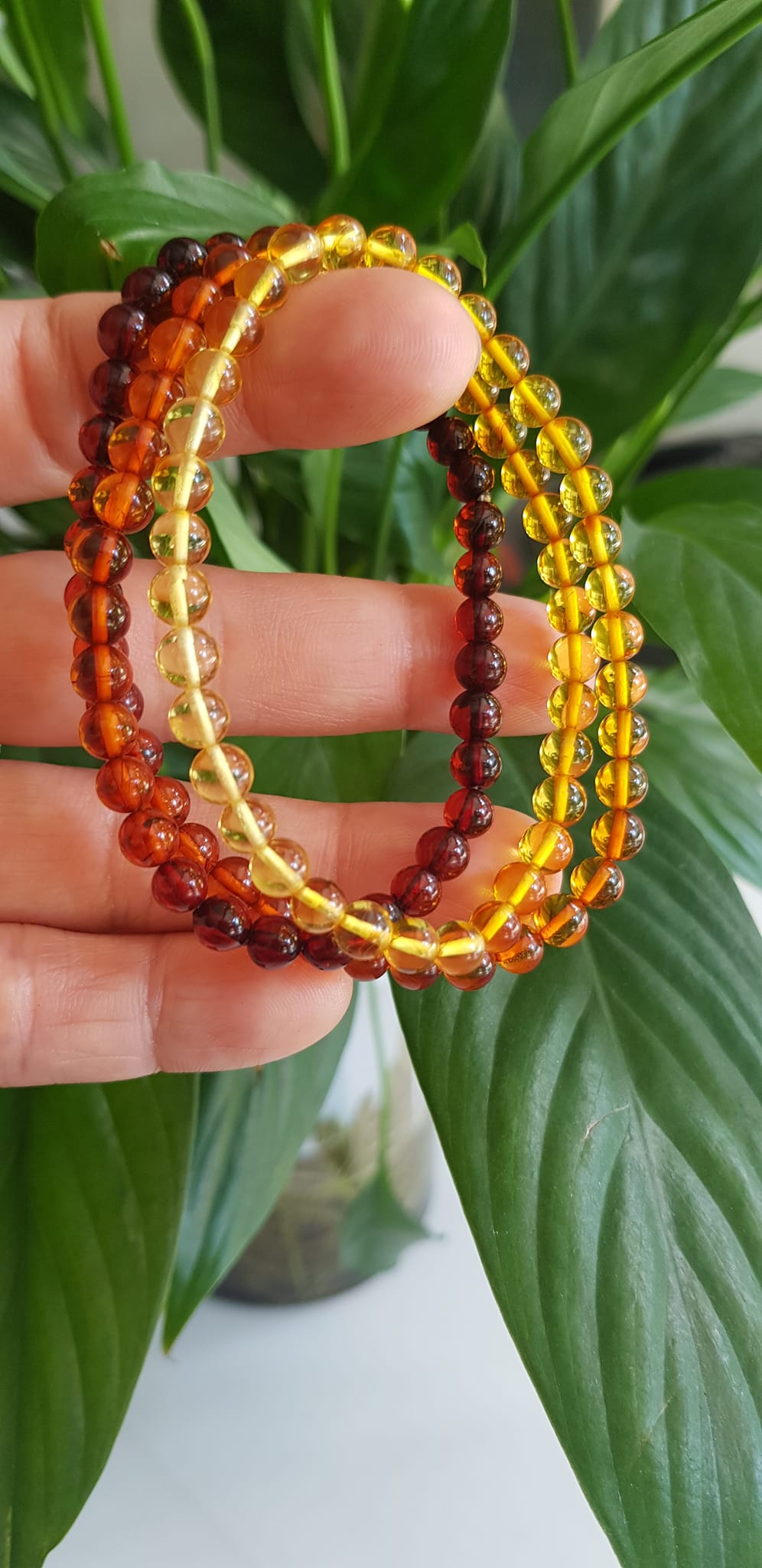 Vòng Hổ Phách tự nhiên đeo quấn tay kiểu 3 vòng Size hạt 5mm 3 màu tam hợp màu vàng anh cam đỏ đậm ạ