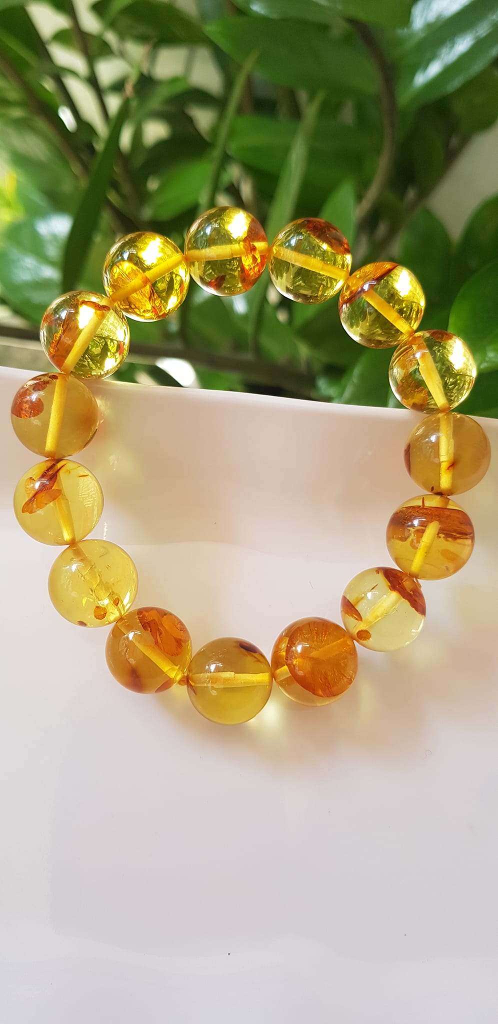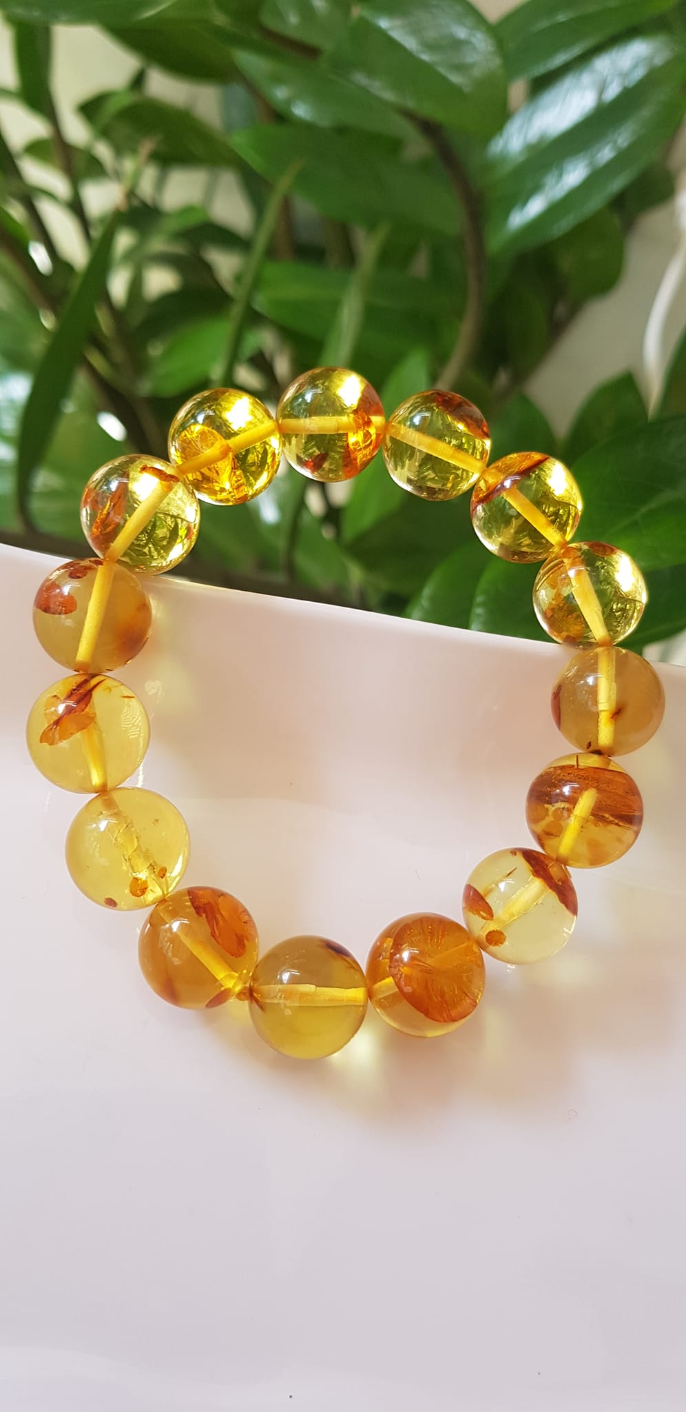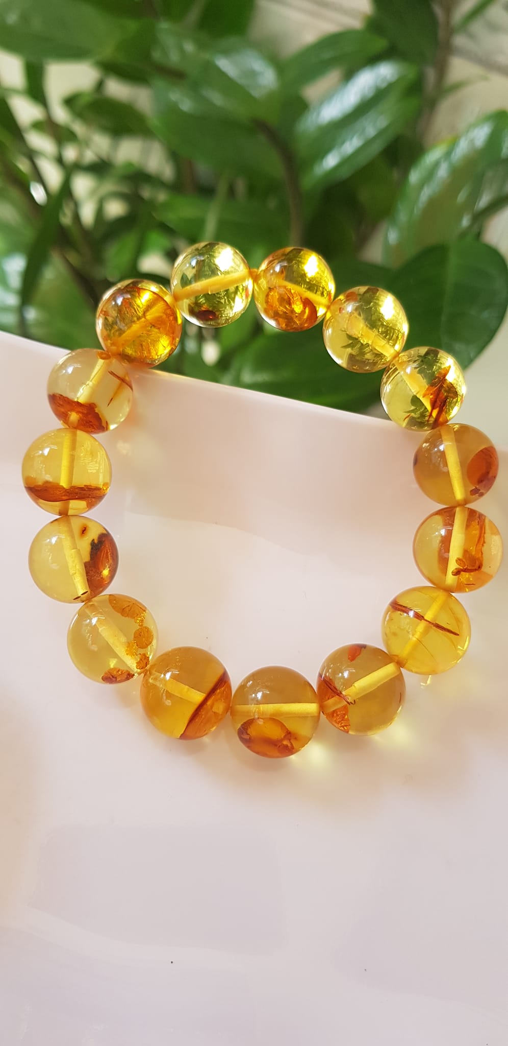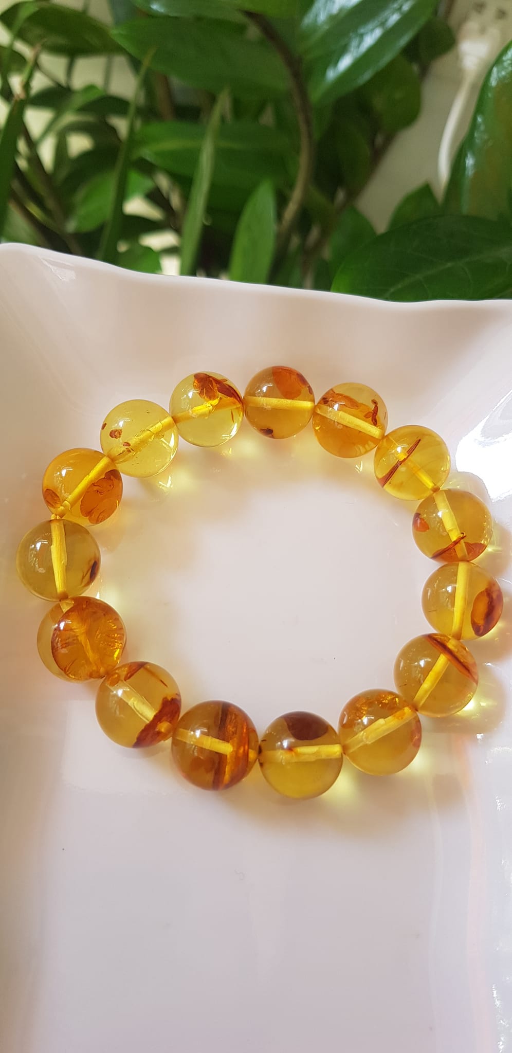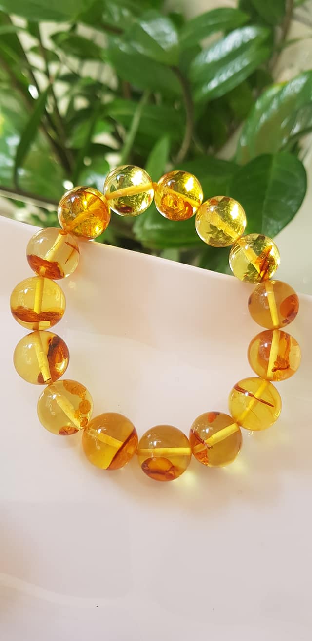 Vòng tay đá Hổ Phách Lu Kiểu SỊN tự nhiên Rẻ Đẹp Màu Vàng Anh Đậm nhạt size 6mm Nữ người lớn và bé nhỏ đeo rất xinh đẹp sang tốt sức khỏe không đá