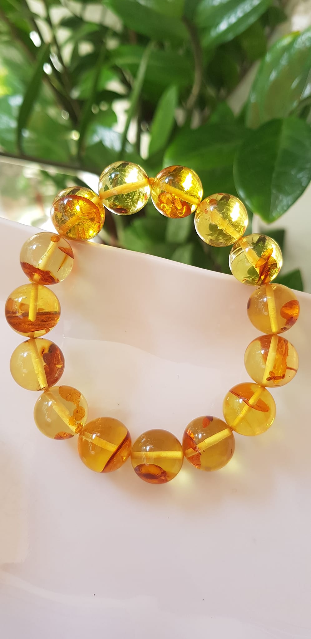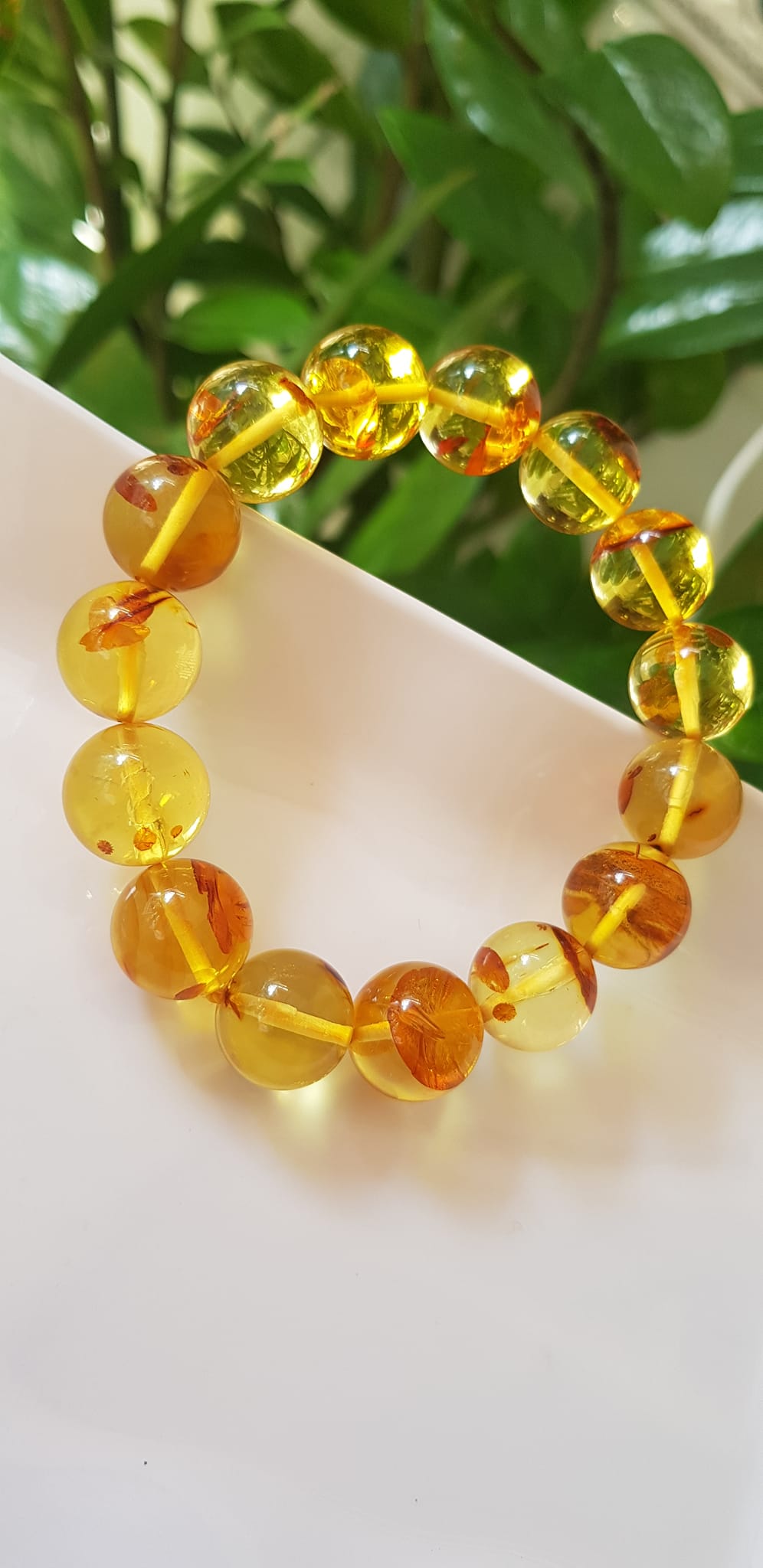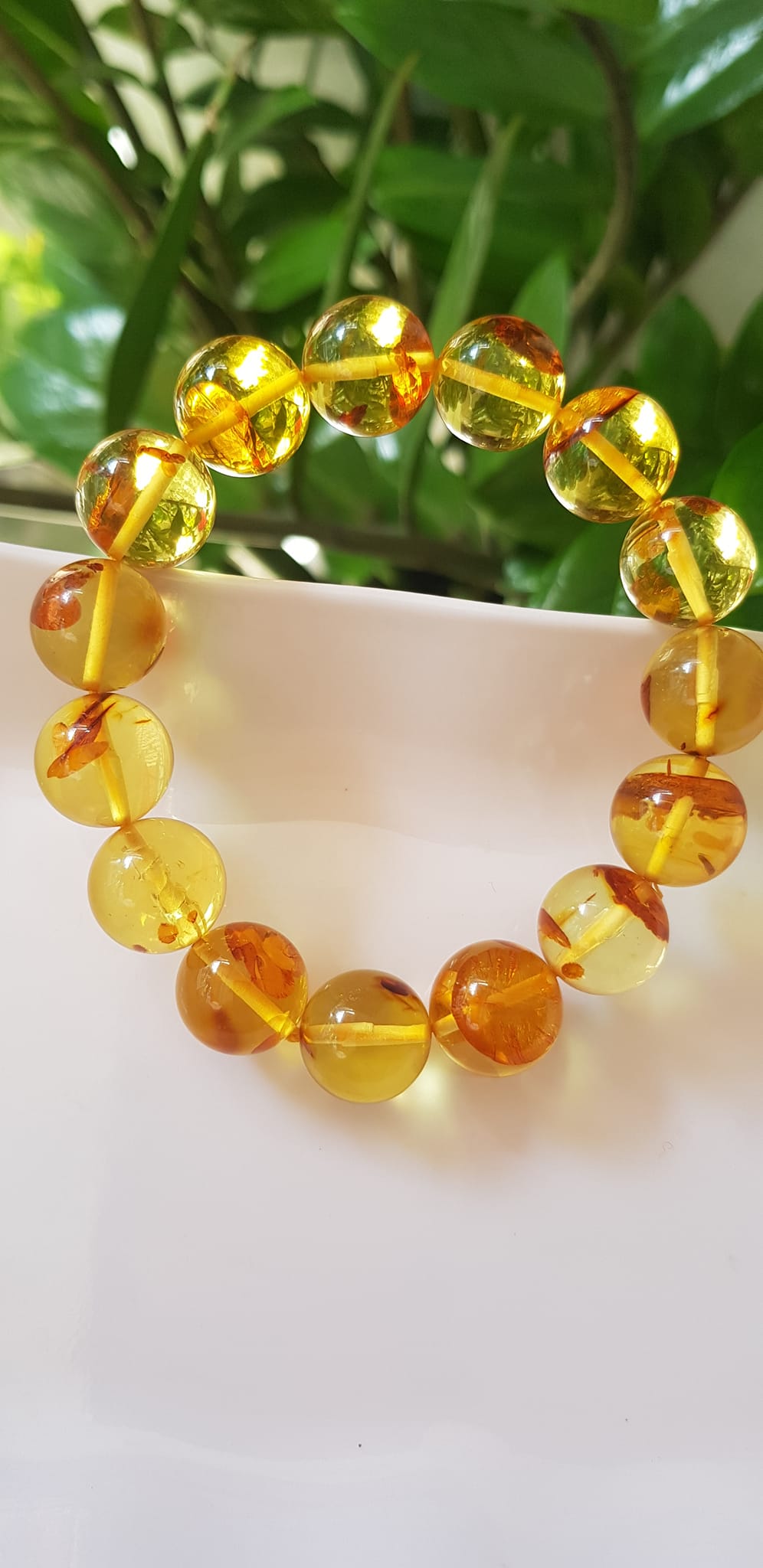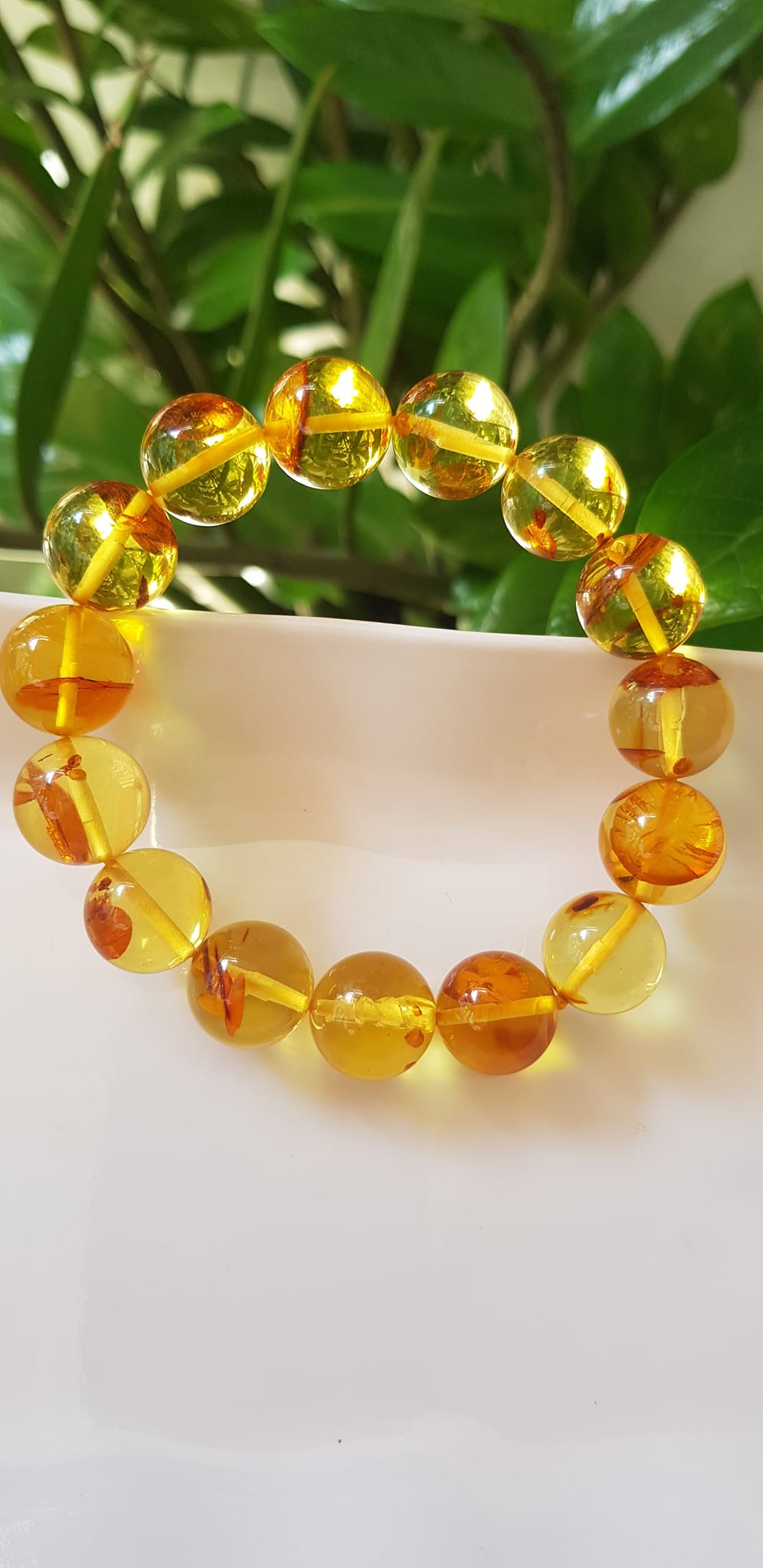 Vòng tay đá Hổ Phách Lu Kiểu SỊN tự nhiên Rẻ Đẹp Màu Vàng Anh Đậm nhạt size 6mm Nữ người lớn và bé nhỏ đeo rất xinh đẹp sang tốt sức khỏe không đá