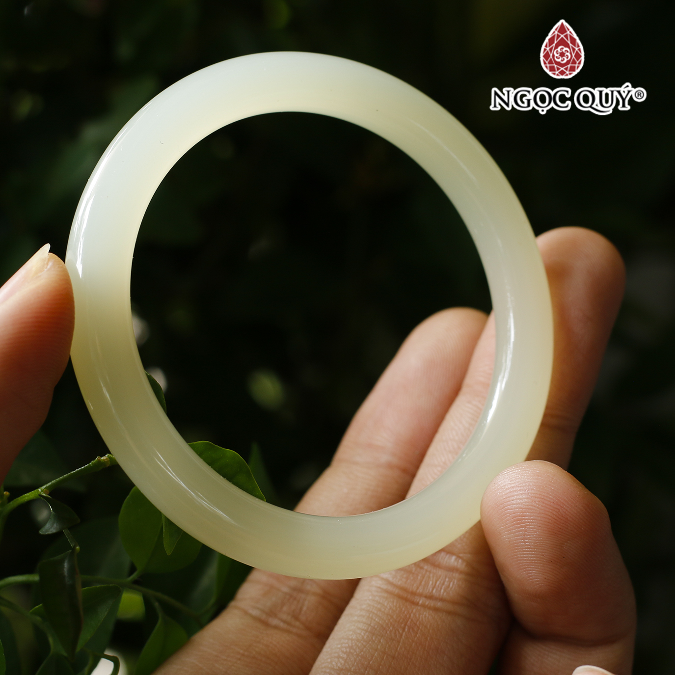 Vòng tay phong thuỷ Nữ Bản Hẹ Đá Mã Não Trắng trong vân hoa đẹp Vòng màu trắng trong Ni 50mm x Cao 12mm x dầy 6,5mm Hợp nữ mệnh kim mệnh Thủy ạ Sản
