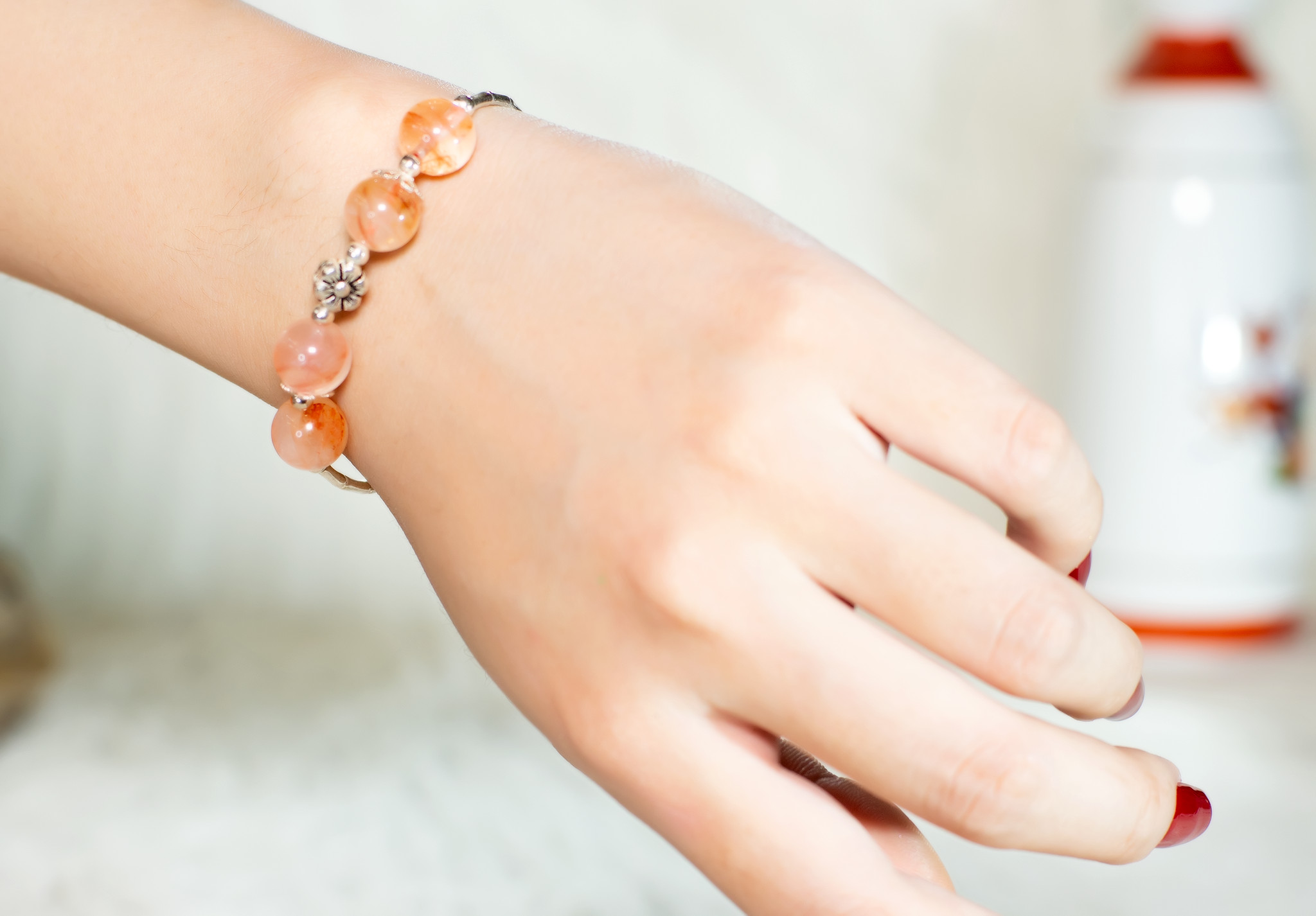 Thạch anh đỏ với màu sắc nổi bật, cá tính và rất dễ mix đồ, chiếc vòng dành cho các cô nàng năng động, trẻ trung.