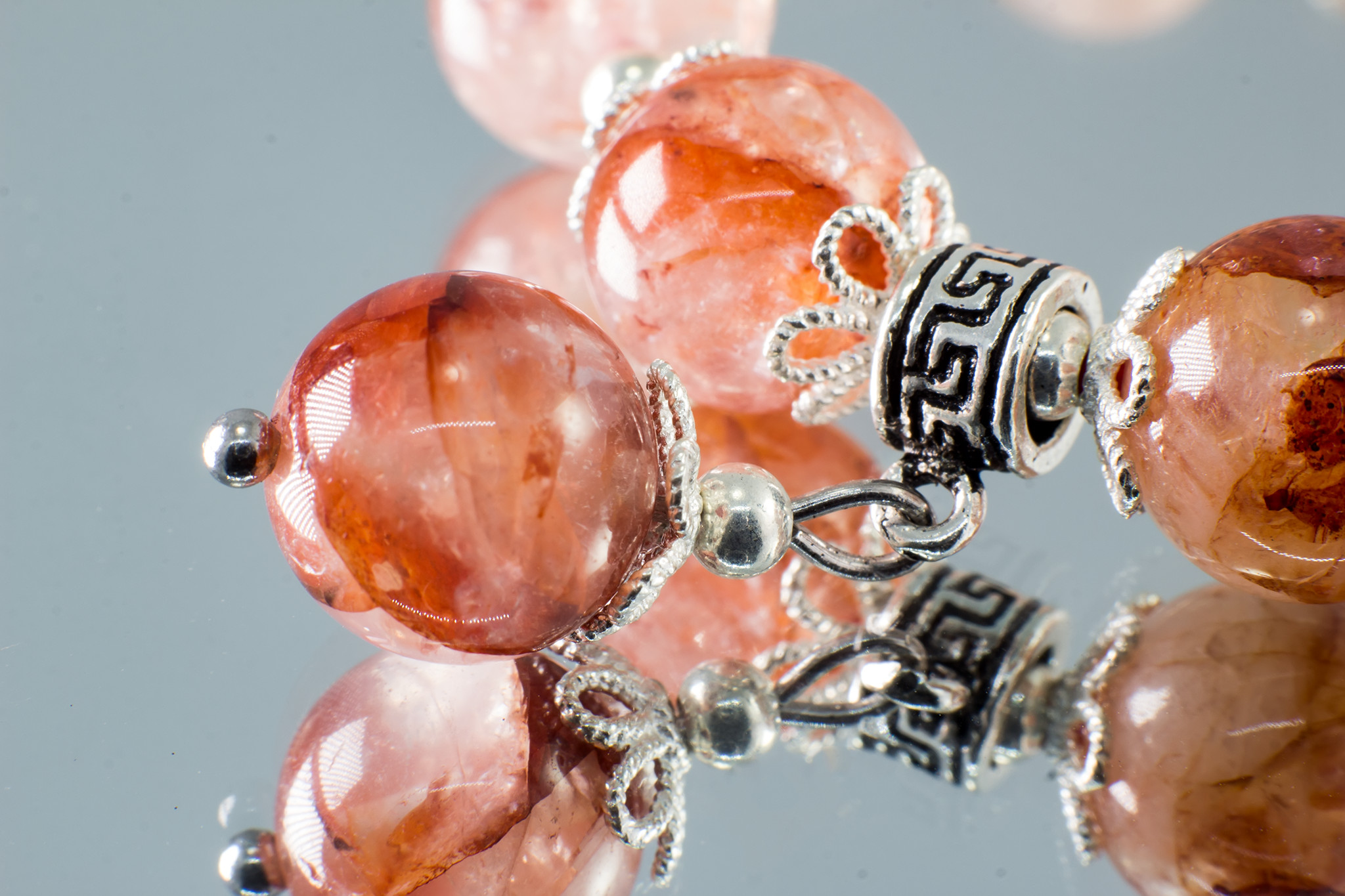 VÒNG TAY 2 LINE ĐÁ THẠCH ANH DÂU PHỐI CHARM HOA BẠC: Thạch Anh Dâu hay "Mũi tên của thần Tinh Yêu" đã không ít lần khiến mỗi ai khi chiêm ngưỡng phải ngạc nhiên