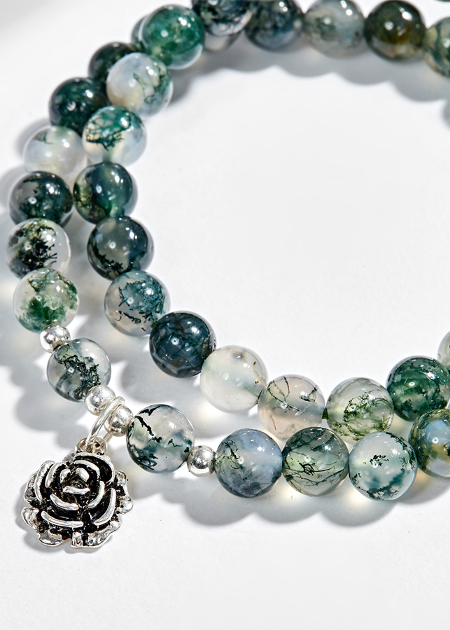 Vòng Tay 2 Line Băng Ngọc Thủy Tảo Phối Charm Bạc (7mm)- Băng ngọc thủy tảo còn gọi là Mã Não (Agate). Về bản chất, mã não là một biến thể của thạch anh, và thuộc nhóm Chalcedony- Vòng Tay 2 Line Bă...