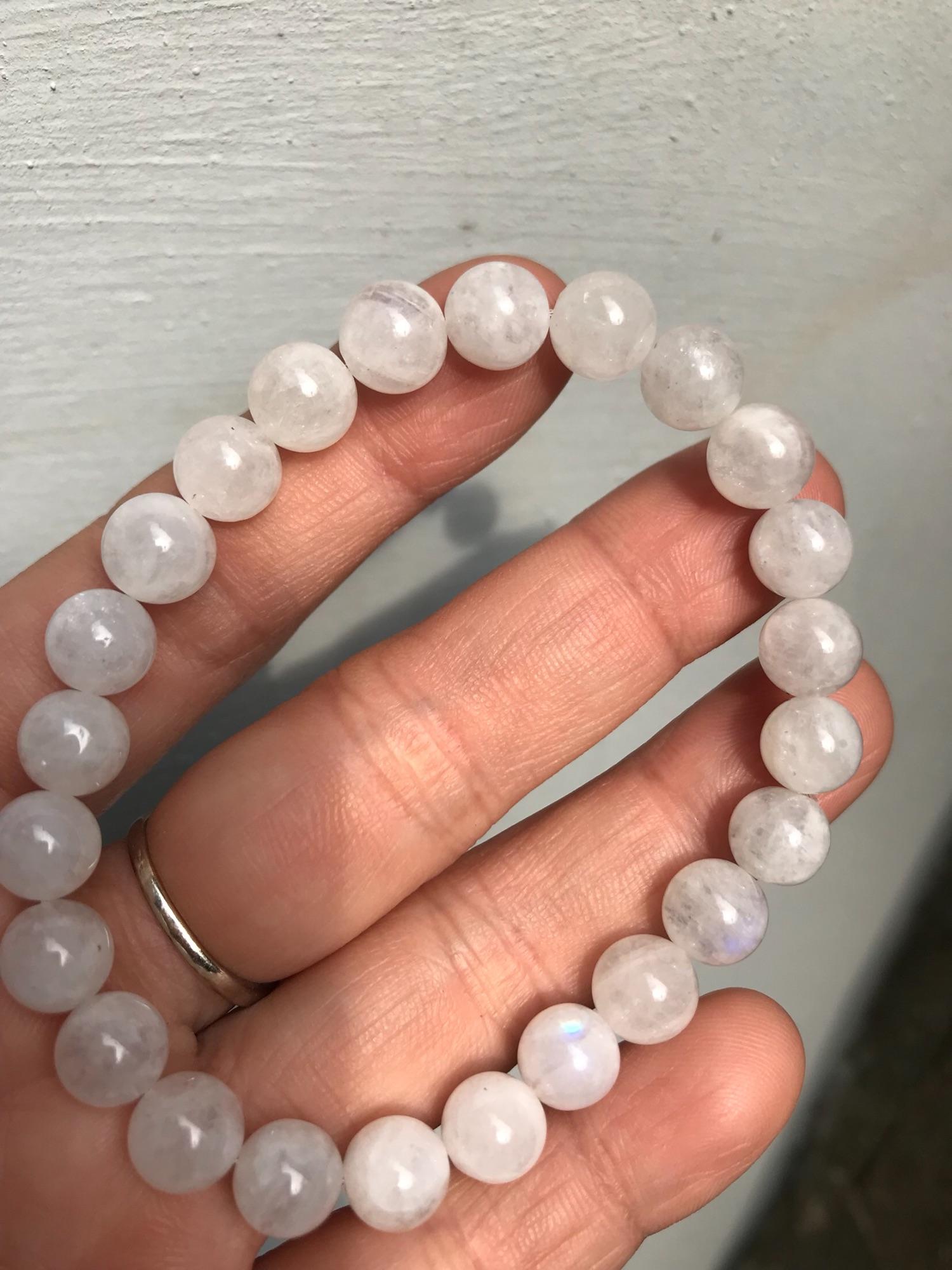 Vòng moon trắng tự nhiên 8mm hay đá ánh trăng trắng trong đẹp Shop Hàng Phong Thủy Sunny Q8 #moon