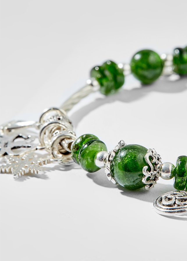 - Vòng Thạch Anh Xanh Phối Charm Chuông Bạc (8mm) giúp xoa dịu cơn giận dữ và lấy lại cảm xúc bình tĩnh. Màu xanh lá cây mang đến một cảm giác cân bằng và