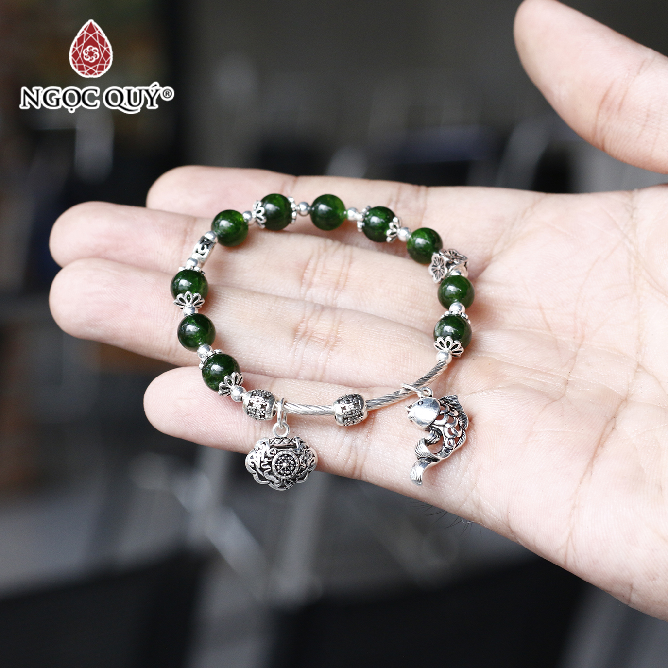 Màu xanh đặc biệt và sang trọng của Diopside khi chế tác thành vòng tay tạo nên một tác phẩm nghệ thuật tuyệt vời, vừa thanh lịch, vừa không kém phần hiện đại, góp phần tôn thêm vẻ đẹp đôi bàn tay và mang lại nhiều may mắn cho bạn.
