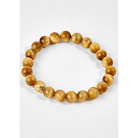 Vòng Tay Đá Mắt Hổ Vàng Phối Charm Lục Tự Bạc Mạ Vàng 24K Ngọc Quý Gemstones