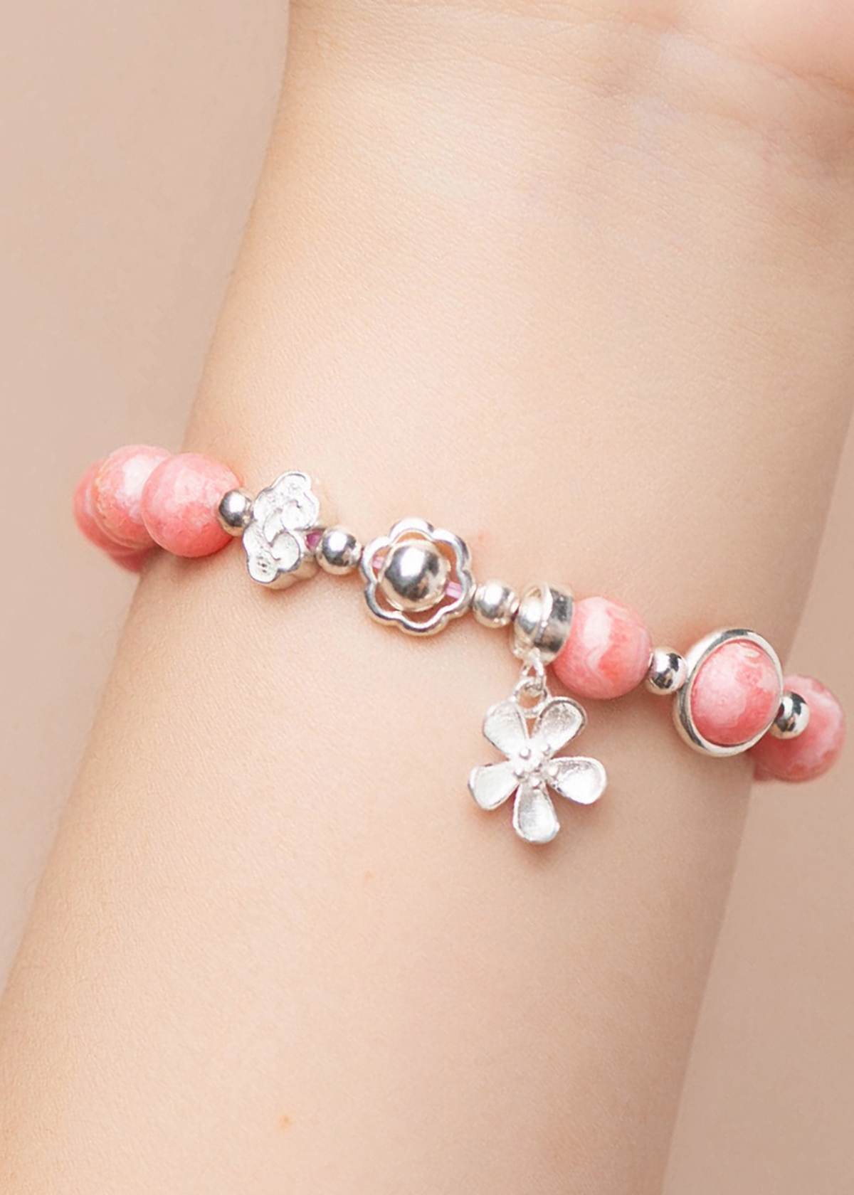 Vòng Tay Đá Rhodochrosite Phối Charm Hoa :