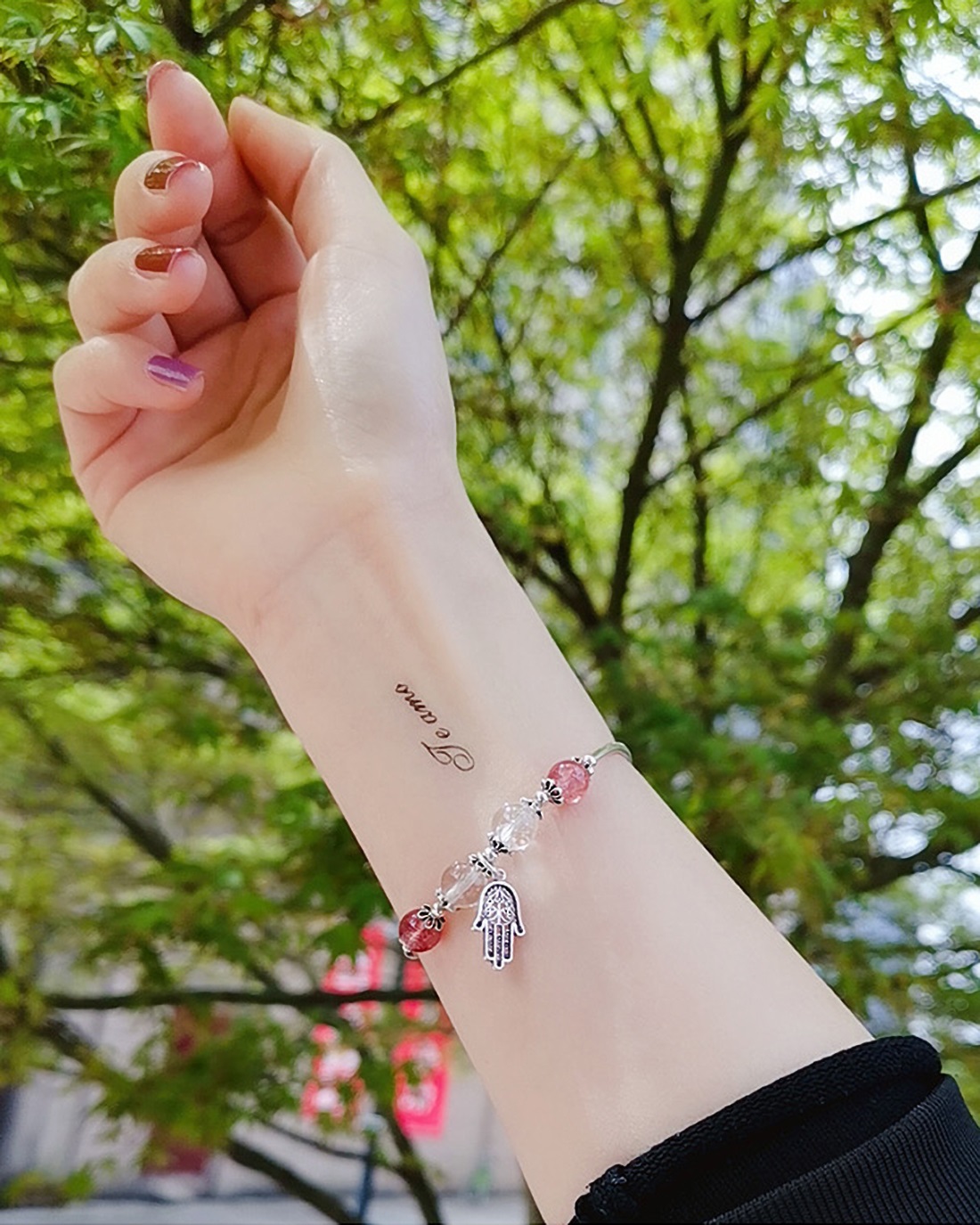 ✨Vòng tay đá thạch anh dâu phối charm bàn tay mệnh hỏa, thổ - Ngọc Quý Gemstones