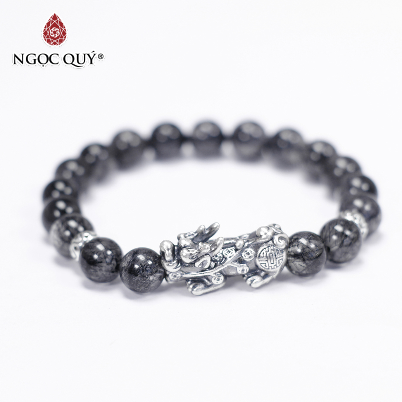 ✨Vòng tay đá thạch anh tóc đen phối tỳ hưu bạc thái size hạt 8mm mệnh thủy, mộc - Ngọc Quý Gemstones