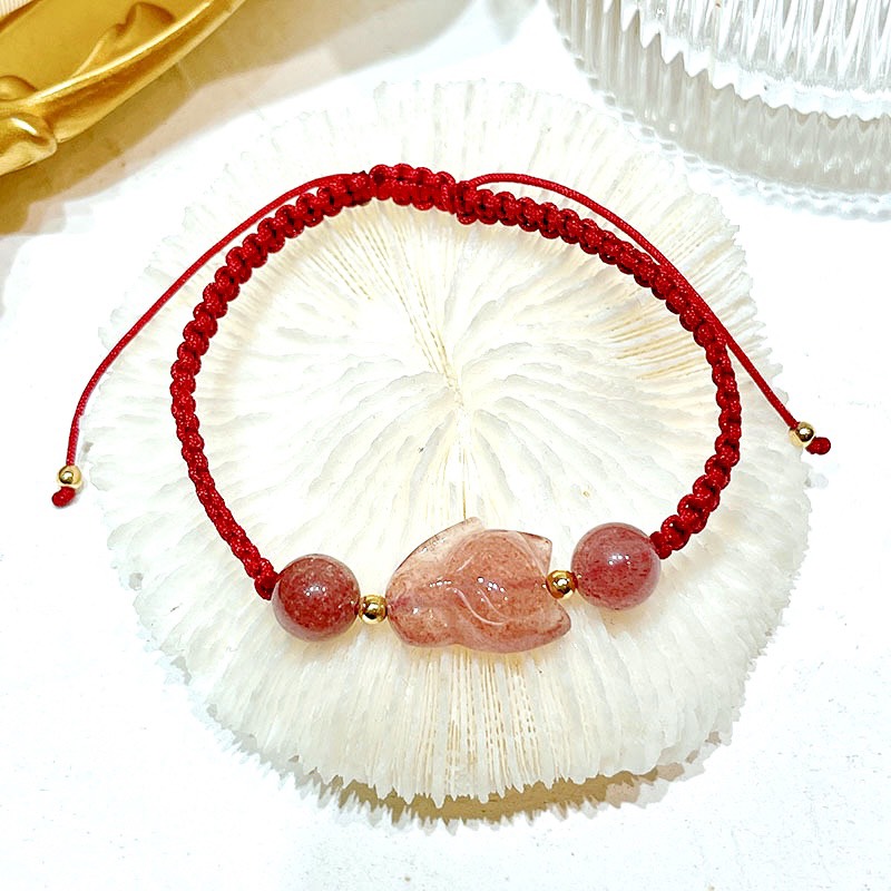 🦊 Vòng Chỉ Đỏ + Hồ Ly Chúa Thạch Anh Dâu Hồng 🦊