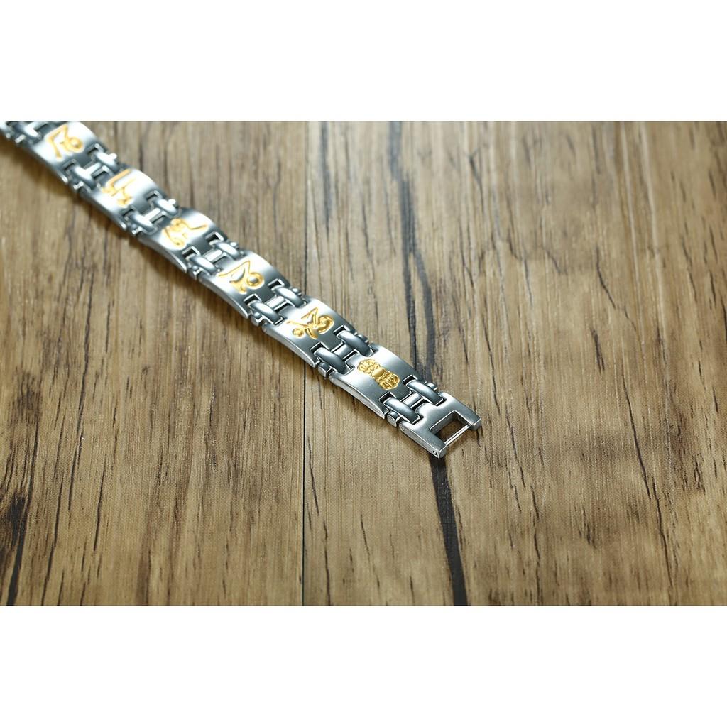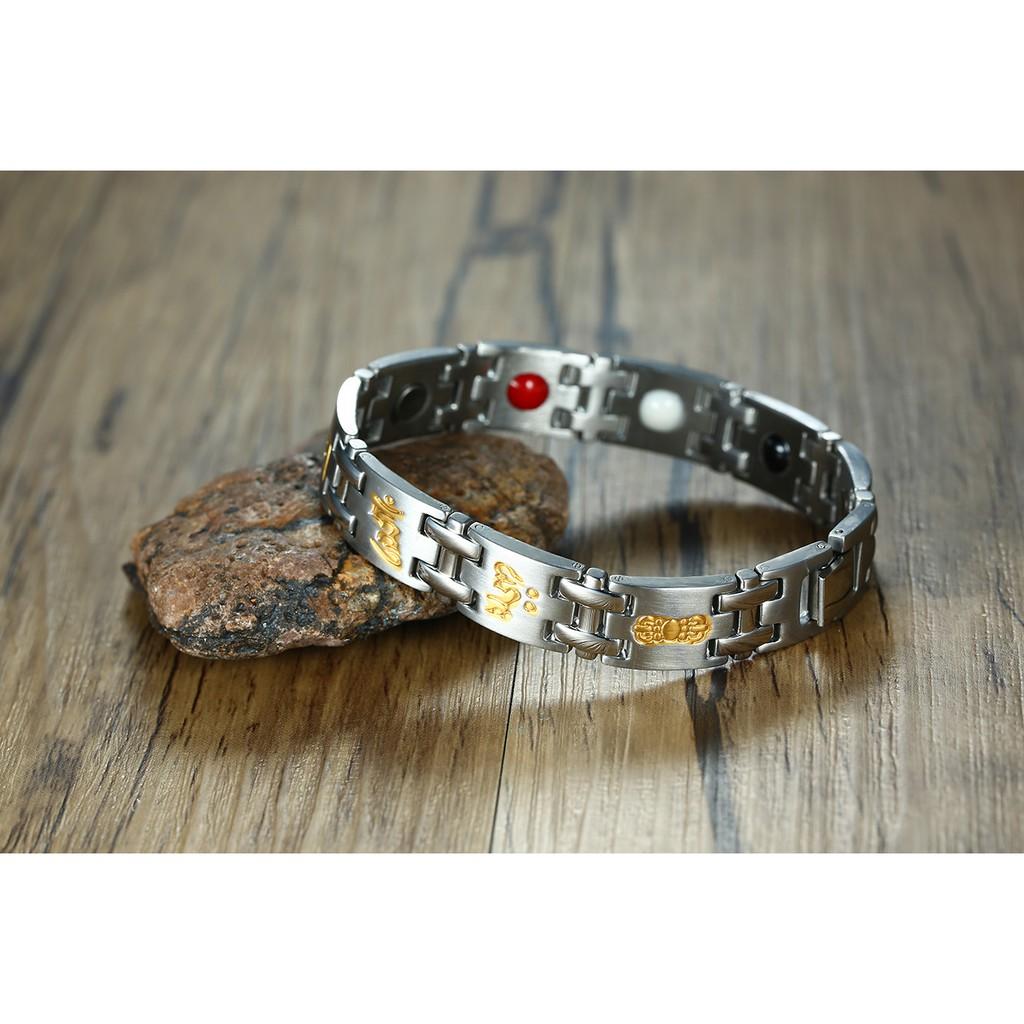 +Sản phẩm vòng điều hòa huyết áp có nguyên liệu từ hợp kim Titan tích hợp đá từ tính, đá Germanium rất tốt cho người có huyết áp không ổn định. Hoạt động với cơ chế loại bỏ các gốc ion có hại trong cơ thể bằng việc sử dụng đặc tính đá từ tính Germanium. Khi áp dụng với thân nhiệt, chiếc vòng tay tiếp xúc với loại đá này, đá phát tán các ion âm, đi xuyên qua lớp biểu bì da và hấp thụ lại các ion không tốt gây nên sự mệt mỏi,chán nản,… của người dùng. Vì đá từ tính hoạt động tốt với cơ địa người, nên nhiều hãng trang sức hay cửa hàng vật phẩm phong thủ thường kết hợp dùng loại đá này để nâng tầm giá trị cho sản phẩm họ làm ra. Có nhiều nghiên cứu đã chỉ ra rằng Germanium đưa lại nhiều lợi cho sức khỏe. Chúng có khả năng tăng đề kháng giúp tăng cường thể chất thông qua tăng cường hệ thống miễn dịch, cung cấp oxy cho cơ thể và loại bỏ độc tố ra khỏi cơ thể. Bạn biết đấy, nhiều trường hợp vì miễn dịch yếu hoặc thiếu oxy nên cơ thể có nhiều biểu hiện không ổn định huyết áp như đau đầu, chóng mặt, thậm chí là ngất xỉu và đột quỵ,…