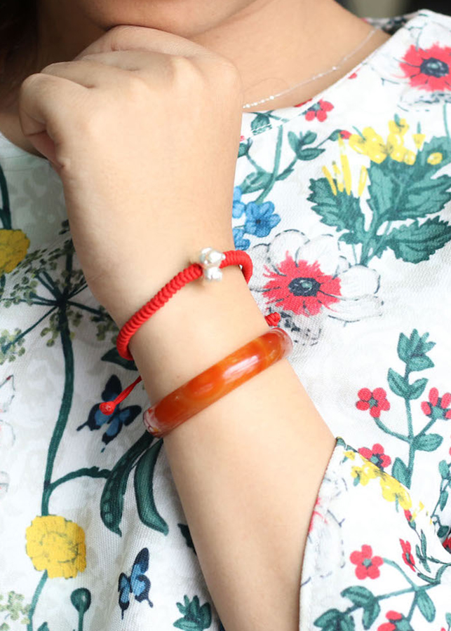 Vòng tay phong thủy Mã Não đỏ 6mm + 3 lu ngọc by ANQLO được chế tác 100% từ đá mã não tự nhiên, Đá mã não có tác dụng giảm căng thẳng, lo lắng,