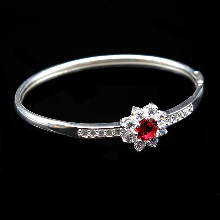 ✨Vòng Tay, Lắc Tay Nữ BẠC HIỂU MINH LTU314 Dạng Kiềng Hoa Đá Đỏ Lấp Lánh