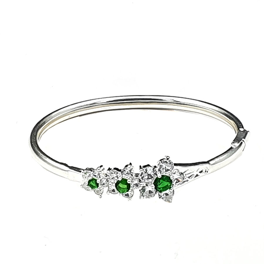 ✨Vòng Tay, Lắc Tay Nữ Dạng Kiềng Tam Hoa Đá Xanh Bạc S925 BẠC HIỂU MINH LTU305S