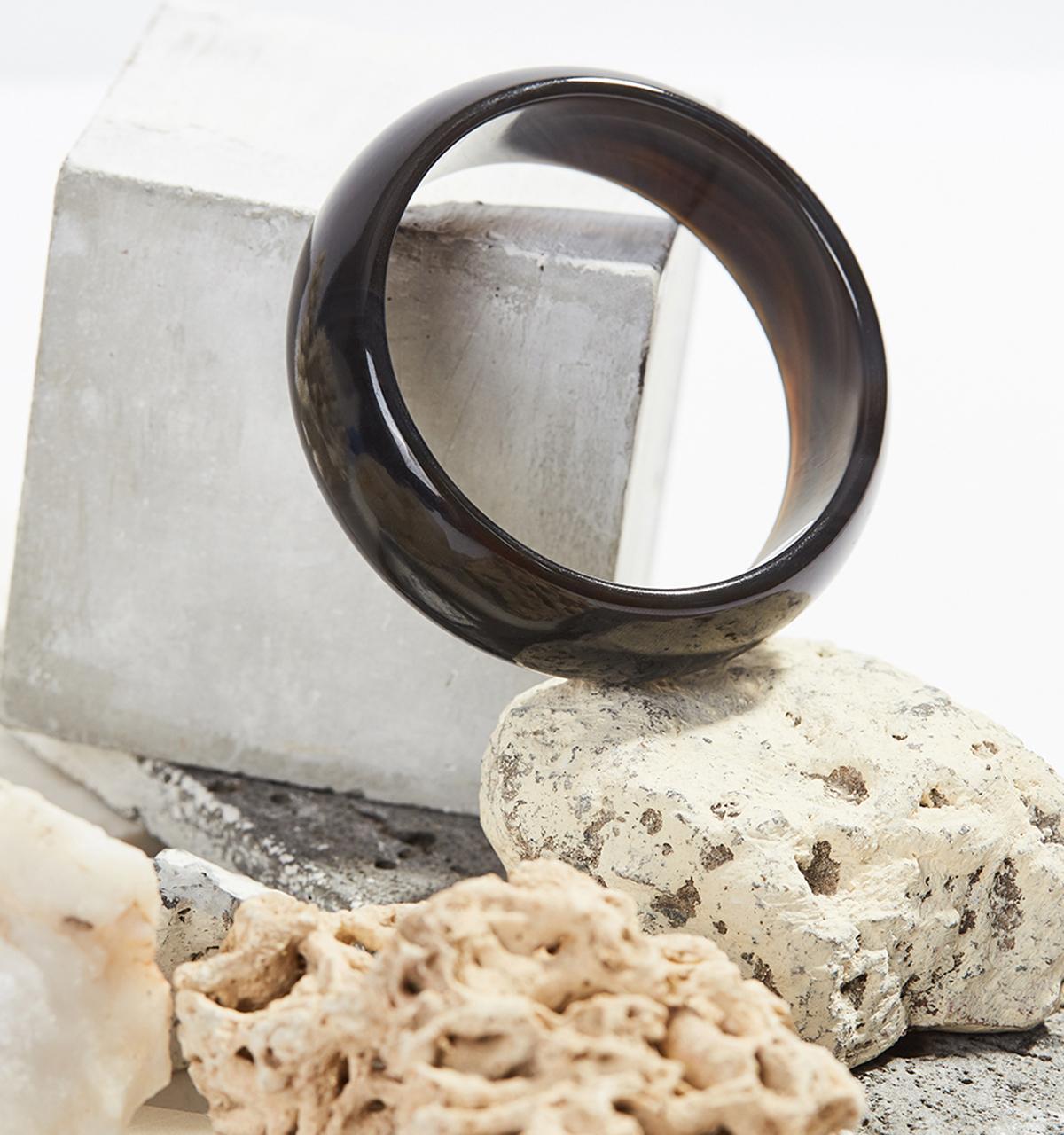 Vòng nguyên khối bản hẹ đá mã não đen - Hợp Mệnh Thủy & Mộc [ Ngọc Quý ]
