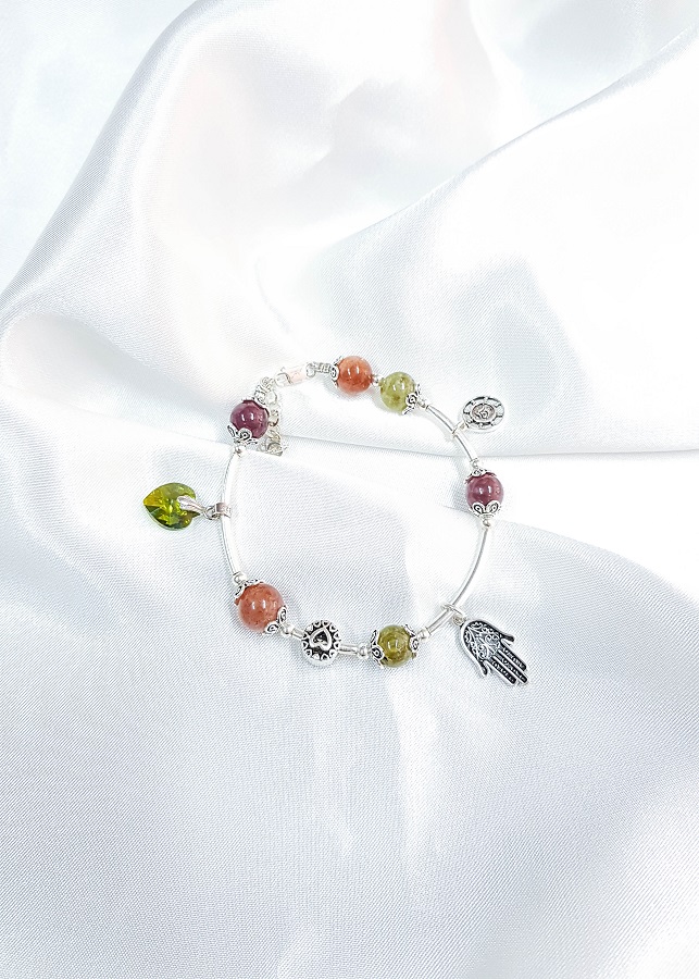 - Vòng Tay Laliz Mệnh Mộc, Hỏa Đá Khổng Tước 8ly Phối Đá Flourite Charm Bạc - TAR.18 được làm từ loài đá tự nhiên kết hợp Bạc 925, không chỉ là một món trang