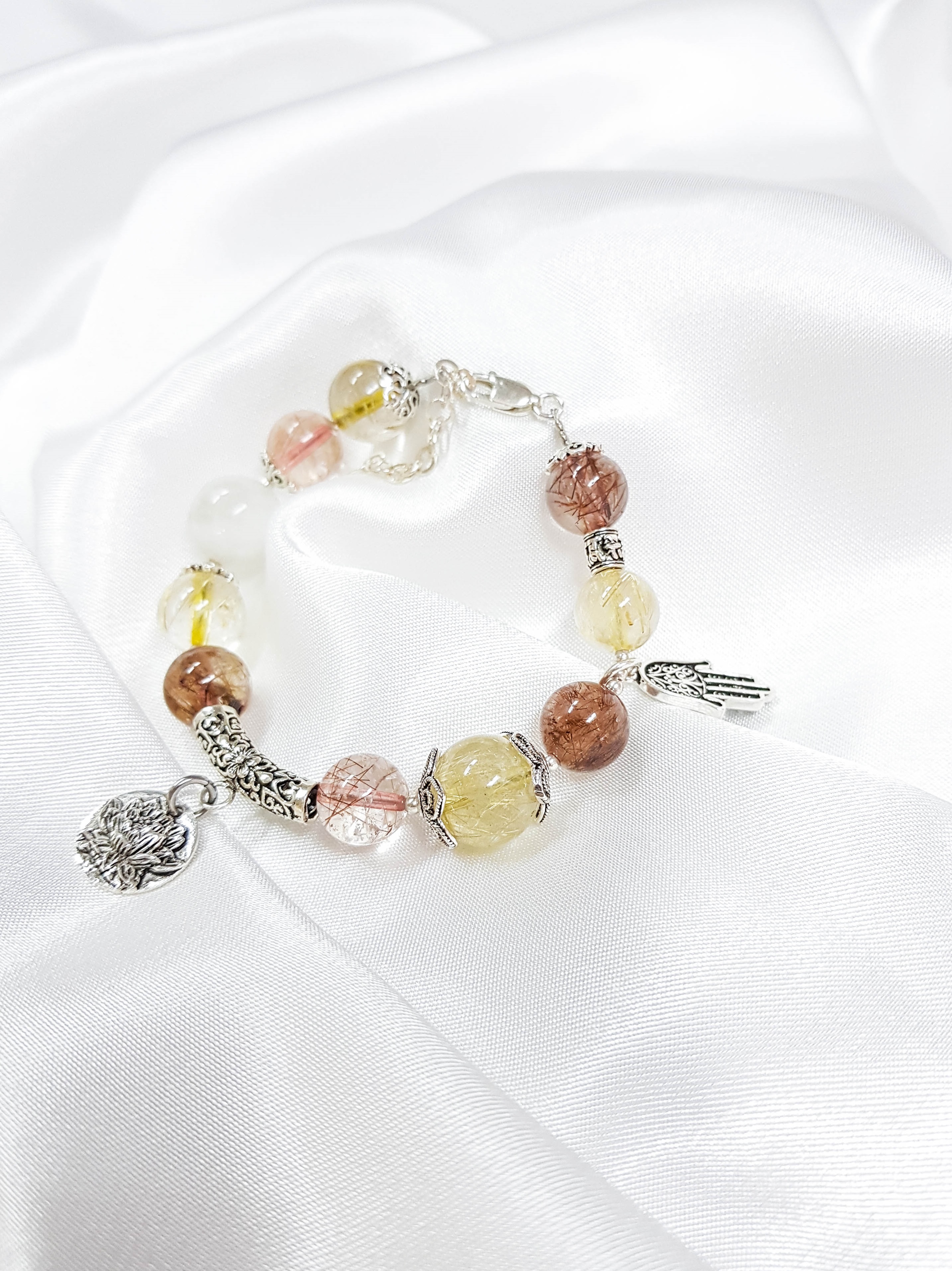 Vòng thạch anh tóc đa sắc 9mm J NATURAL STONES Vòng thạch anh tóc đa sắc 9mm J NATURAL STONES size 9mm ly phù hợp với nữ. Nam có thể đeo kết hợp với phụ