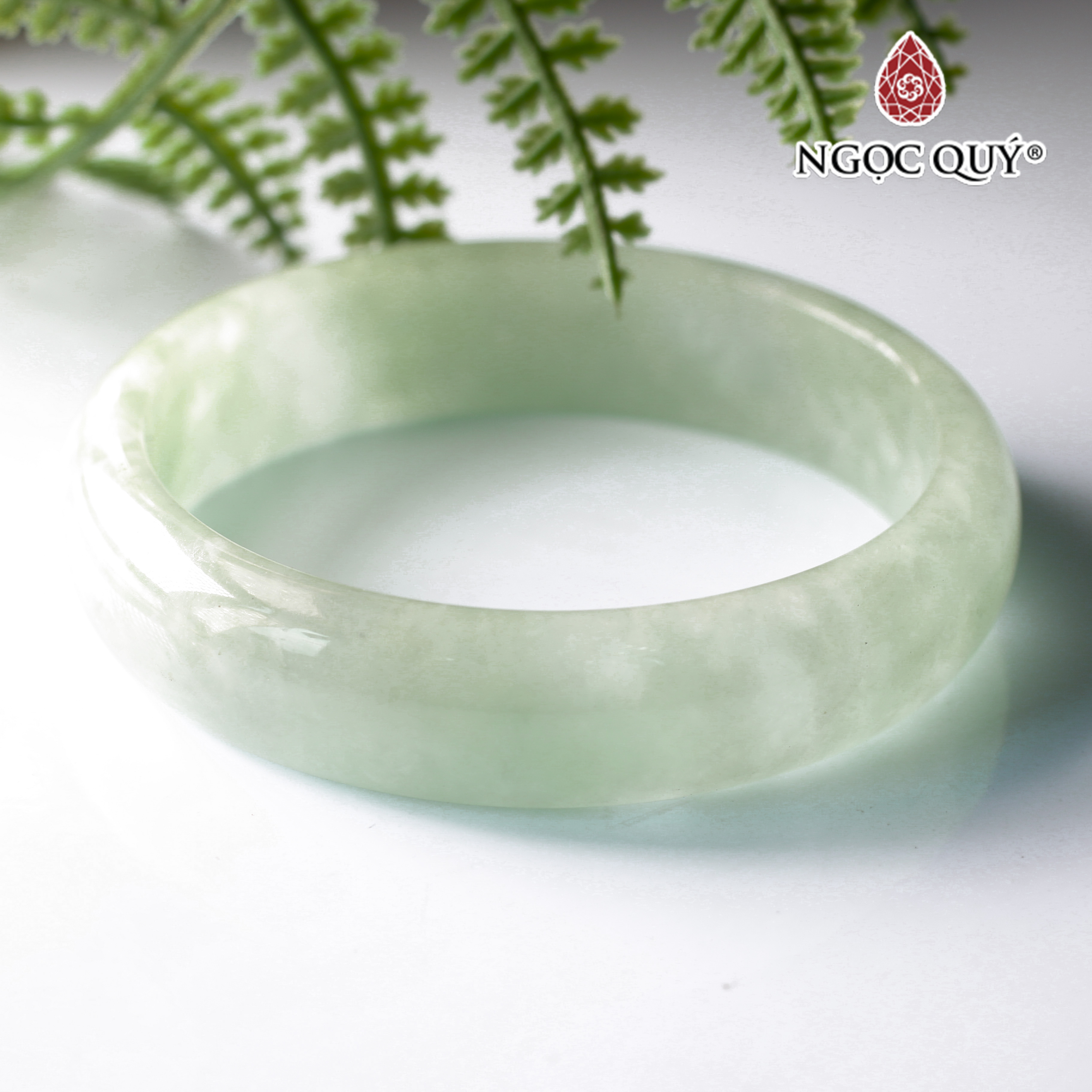 Vòng tay Nữ Đá Cẩm Thạch mới TR Lý 57 mm x cọng 7,5mm Màu Xanh lý tươi trắng 2 bên đều vòng đẹp Nữ 55kg - 64kg đeo đẹp món quà tặng chính mình